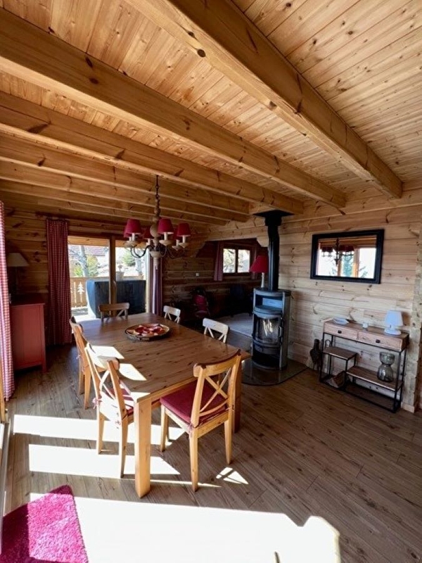 Dans un cadre exceptionnel sur les hauteurs de Foncine le Haut, ce chalet vous offrira une vue imprenable sur la nature environnante. Il se compose au rez de chaussé d'un hall d'entrée avec coin bureau idéal pour le télétravail, au 1er étage, d'une pièce de vie lumineuse avec cuisine toute équipée, salle à manger et salon avec TV et poêle à bois, d'une chambre avec 1 lit double (160*200), d'une salle d'eau avec cabine de douche et d'un WC indépendant. Au second étage, une chambre avec 1 lit double (160*200), 1 chambre avec 2 lits simples (90*200) et une chambre avec 2 lits simples (90*190) pouvant être jumelés, une salle de bain avec baignoire et WC. Pour votre plus grand confort, les draps et les serviettes de toilette sont fournis. Côté extérieur, une terrasse exposée plein sud pour profiter de la magie des lieux et du calme environnant. Un salon de jardin, des transats et un barbecue vous permettront de passer des moments conviviaux en famille ou entre amis Un garage avec porte électrique est également à votre disposition. Idéalement situé à 2 kms du centre du village où vous trouverez tous les commerces (restaurant, supermarché, fromagerie, bureau de tabac...). Les sentiers VTT, ski de fond et raquettes partent depuis le gîte et un fil neige pour l'apprentissage du ski de descente se trouve à 2 kms. Le parc polaire de Chaux Neuve, les gorges de la Saine et de la Langouette se trouvent à une dizaine de minutes