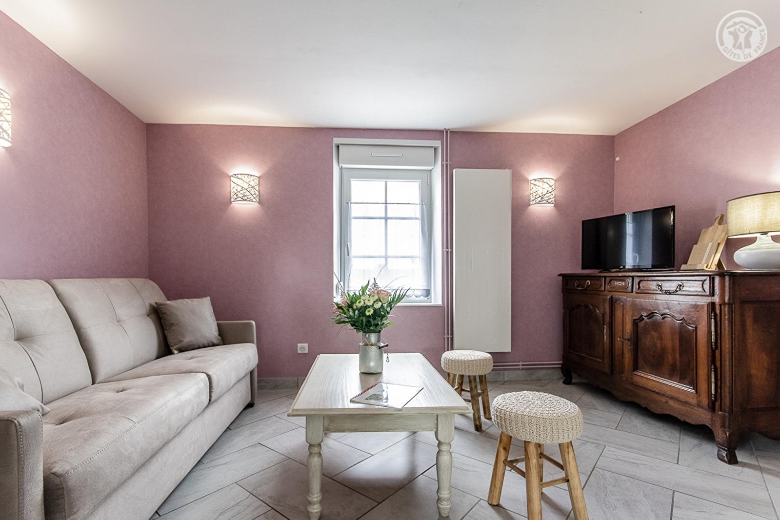 Composition du gîte : Maison individuelle sur 2 niveaux. Wifi. Chauffage central (gaz). Rdc : véranda, séjour-cuisine-salon, salle d'eau (douche/wc). 1er étage : 2 chambres (lit 2 p. 160x200cm / 2 lits 1 p. 90x190cm jumelables en lit 2 p. 180x190cm) dont 1 avec salle d'eau privée (douche), wc indépendant. Jardin clos + terrain. Double terrasse. Parking privé. Local vélos sécurisé. Gares TGV : Creusot 49 km, Mâcon Loché 64 km.