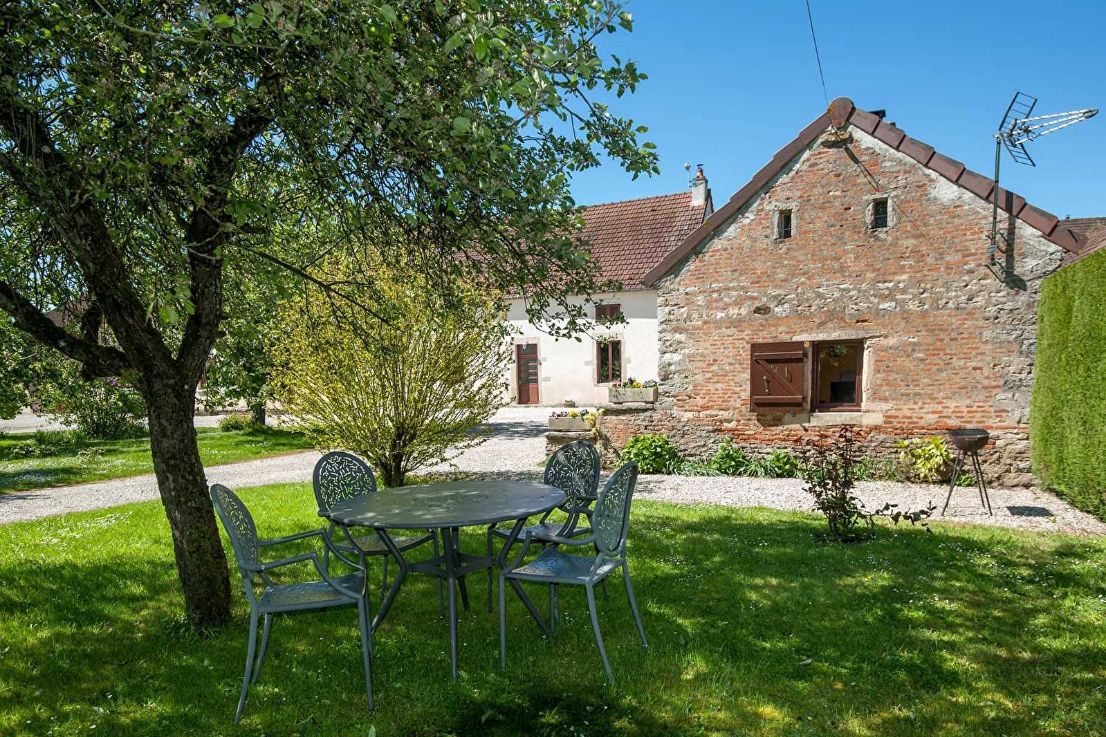 Ravissante authentique petite grange traditionnelle de caractère du 19ème siècle soigneusement restaurée sise sur un ancien domaine agricole familial intégralement revisité en confortable villégiature (propriété comprenant 3 gîtes). Calme total au cœur d'un paisible petit hameau rural résidentiel de la douce campagne chalonnaise, lové en lisière immédiate de champs & prairies, à deux pas d'un bucolique étang & de la vaste forêt domaniale de Gergy, immense « poumon vert » du territoire à parcourir lors d'apaisantes promenades à pied ou VTT. Agréable environnement champêtre & naturel préservé, à 3 km du bourg typique d'Allerey-sur-Saône, chargé de grande histoire de par sa rente de situation (situé tout à la fois sur les rives de la Saône & l'ancienne voie romaine Agrippa), tour à tour port fluvial majeur du pays Beaunois & de ses vins jusqu'au XVIIème siècle, important nœud ferroviaire de voyageurs & marchandises (fin 19ème/début 20ème siècle) puis l'un des 20 rares « camp-hôpital américain » durant la 1ère guerre mondiale. Gîte aménagé dans l'esprit d'une petite maisonnette chaleureuse de type chalet. Chaleureux cachet campagnard mixé à une belle restauration patrimoniale (poutres d'origine et ancien four à pain d'époque transformé en cheminée). Large terrasse en gravier (exposée & ombragée) ouverte sur un agréable jardin privatif engazonné & arboré, espace réservé niché sur une vaste propriété soignée & fleurie disposant d'un verger fruitier (cerisiers, pruniers, pêchers, pommiers, poiriers… / cueillette possible).