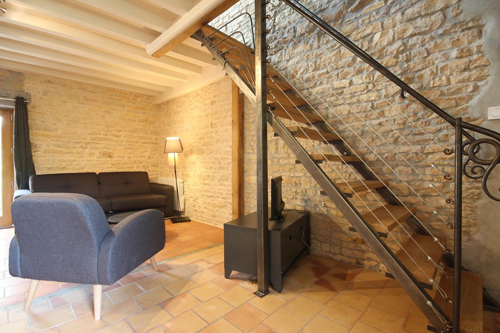 Tous deux passionnés de nature et d'environnement, Fabienne & Cyril vous accueillent au sein d'un ravissant authentique corps de ferme traditionnel de caractère du 18ème siècle chargé d'histoire - composé de plusieurs « ailes » réhabilitées - niché sur une vaste propriété naturelle de 12 ha entretenue selon les principes de la permaculture respectant la biodiversité locale. Calme et tranquillité totale, blotti au creux d'un exceptionnel écrin champêtre & naturel préservé de champs & prairies, jouxtant une vaste forêt domaniale. Cadre et site paysagé littéralement enchanteurs, totalement apaisant, relaxant et ressourçant (possibilité d'observer la faune sauvage sur place), à deux pas du centre du charmant village typique de Chapaize & son très riche patrimoine (rare commune disposant entre autres de 2 églises romanes du XIe siècle classées, dont une des plus anciennes « tour-lanterne » de Bourgogne, et d'une superbe tuilerie du XIIIe siècle parfaitement restaurée). Gîte de très bon confort. Chaleureux cachet campagnard aux accents contemporains sublimé par une restauration patrimoniale soignée (pierres, plafonds, empierrements d'origine). Ambiance douce, zen & cosy. Beaucoup de charme. Large terrasse exposée & ombragée jouxtant un agréable jardin naturel privatif sans vis-à-vis, ouverts sur le domaine & un bucolique verger. Magnifique vue dégagée sur la campagne environnante.
