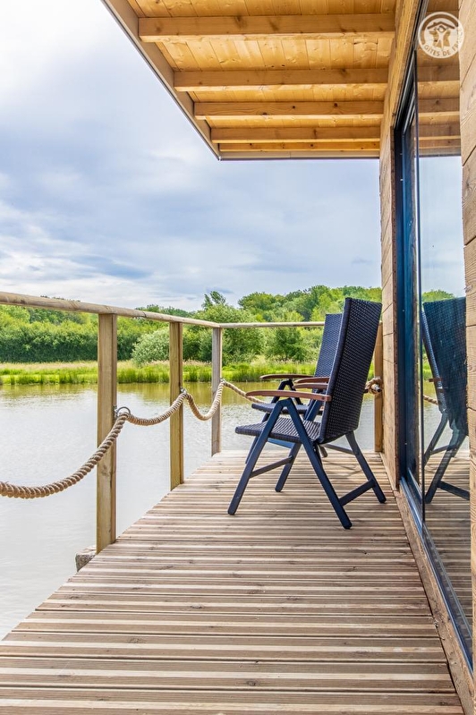 Gérants de la "Ferme des Animaux des Petits Bois" sise à 12 km (ferme d'exposition avec plus d'une centaine d'espèces d'animaux domestiques & activités pour toute la famille), Sonia & Jean-Baptiste vous accueillent au sein d'une insolite élégante cabane contemporaine sur pilotis lovée sur un bucolique étang de pêche de 1 ha ("no-kill"), au creux d'un sublime écrin préservé de nature & verdure, en lisière de bois & prairies. Cadre absolument magique & enchanteur, littéral havre de paix & repos, blotti sur une propriété privée de 30 ha disposant d'une vaste forêt (parfaitement entretenue avec chemin de promenade en pleine nature & tyrolienne), d'une rivière poissonneuse, d'un espace "bien-être" en accès payant (spa & sauna) et d'une aire de jeux enfants (toboggan/escalade/cabane…). Le privilège rare de pouvoir observer la faune sauvage comme rendre visite aux chevaux des propriétaires parqués non loin. Très bon confort. Chaleureux cachet campagnard aux accents contemporains. Ambiance zen & cosy, pétri de charme & baignée de lumière. Charmant balcon-terrasse "sur l'eau" abrité offrant une superbe vue sur le site. Magnifiques paysage & panorama. Agréable jardin naturel privatif.