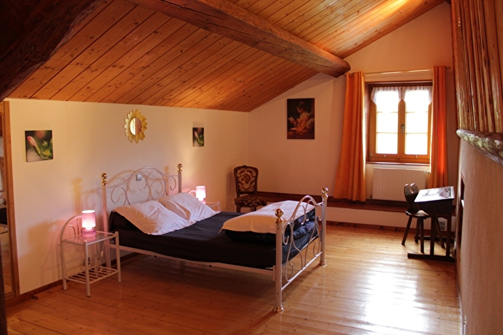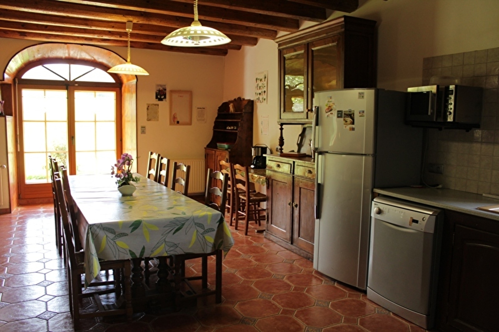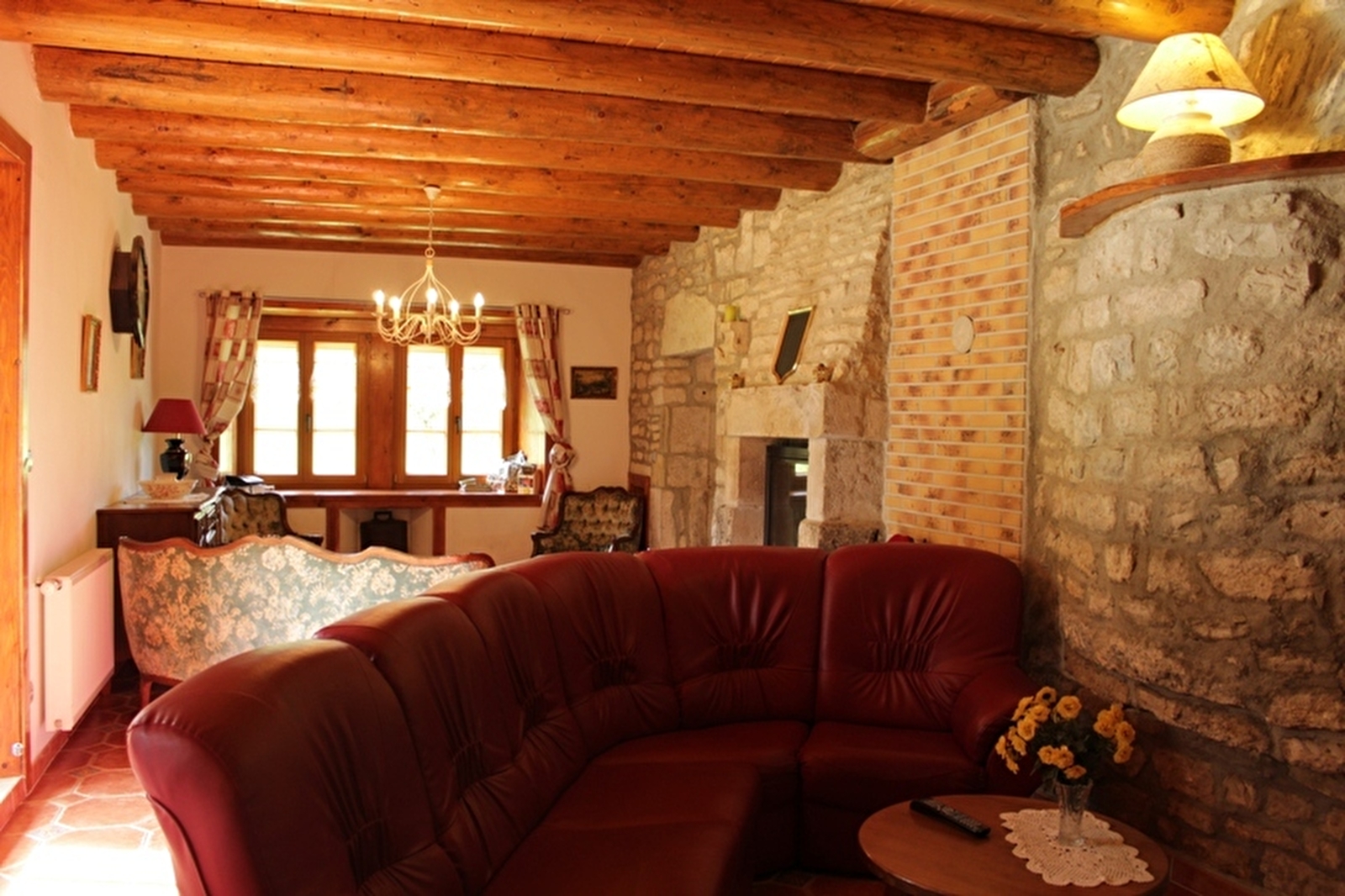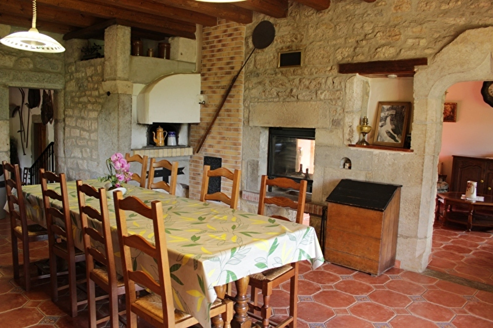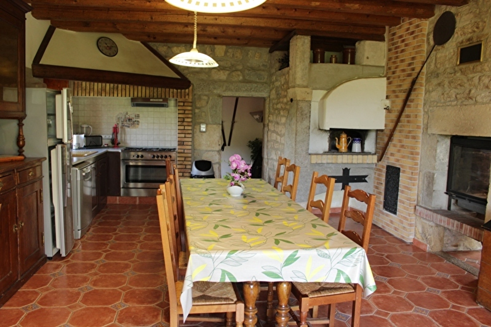 Maison indépendante de caractère, où poutres et pierres apparentes dominent, entièrement restaurée par le propriétaire. Rez de chaussée avec cuisine (réfrigérateur avec congélateur et micro-ondes) cheminée à double face (foyer visible dans la cuisine et le salon), salon, salle à manger, salle d'eau, wc. Deux terrasses, barbecue, salon de jardin. A l'étage : 4 chambres avec chacune 1 lit 2pl + une salle d'eau privative avec wc. + 1 petite chambre 2 pl (6m²), Dans une cave voutée salle de jeux avec billard babyfoot. Garage et abri couvert , chauffage central. Terrain de pétanque. Connexion internet gratuite. (Accueil un seul chien gratuit avec une caution de 50 €)