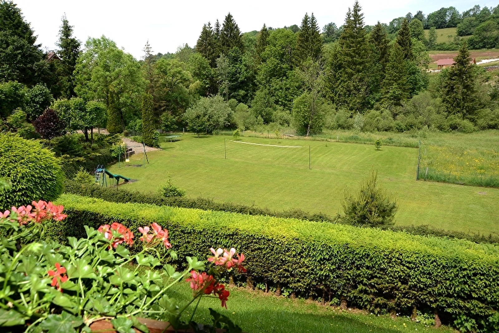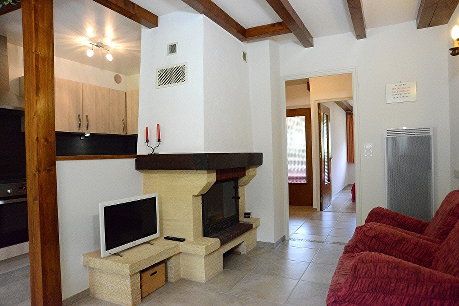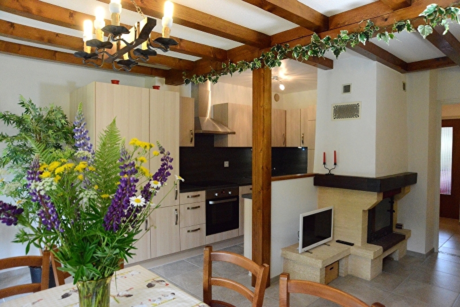 Logement situé au rez-de-chaussée d'une maison où se trouvent d'autres logements . Entrée avec coin-cuisine, coin-séjour,coin-salon avec cheminée, salle d'eau et WC indépendants. Ch 1: 1 lit 2 pl, ch2: 2 lits 1 pl. Grand terrain clos, avec jeux enfants, terrain de boule, cour, salon de jardin, barbecue, buanderie avec lave linge et sèche-linge. Prise de recharge pour voiture électrique. Chauffage électrique. Charges comprises. Forfait bois cheminée 20€. Proximité Suisse.