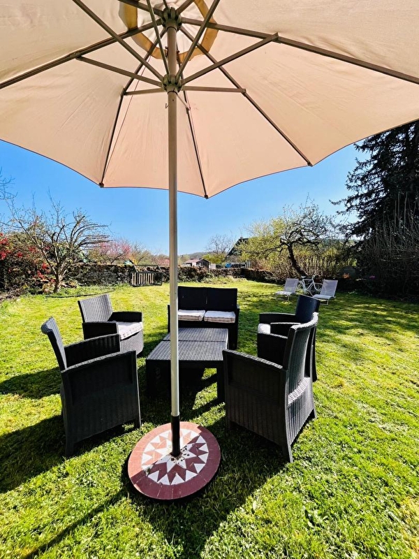 Composition : Maison de village mitoyenne à logement propriétaires & habitation voisine (totale indépendance). Chauffage central fioul. Wifi (fibre). Rdc : séjour-cuisine, 2 chambres (lit 2 p. 160x200cm dans chaque), salle d'eau (douche/Wc). 1er étage : salon (TV & cave à vins), 1 chambre (lit 2 p. 160x200cm) avec salle de bain privée (baignoire + douche + Wc). Jardin clos (500m²) + terrasse + terrain de pétanque + local vélos + parking privés. Commodités dont supermarché 6 km.
