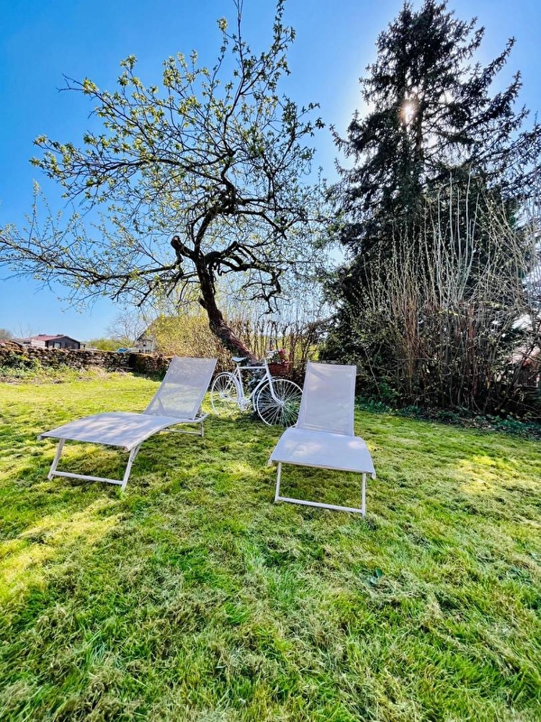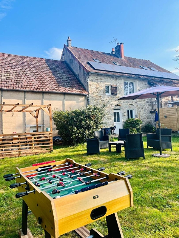 "Fruit de la rencontre de la montagne avec la mer" (originaires de Normandie & Haute-Savoie), Adélie & Grégory vous ouvrent les portes d'une authentique demeure de caractère du début XXe intégralement rénovée, pétrie d'histoire (ancienne "maison de mineurs" jadis liée aux "Houillères" d'Epinac), blottie au calme en bordure de ruelle & lisière de prairies, à deux pas d'une élégante église datant du XIIIe (classée "Monument Historique"), au cœur d'un paisible petit village typique. En pleine campagne préservée (en partie protégée en ZNIEFF pour ses richesses faunistiques & floristiques), au creux d'un verdoyant vallon de prairies dominé par de douces collines boisées, apaisant écrin paysagé mixant agriculture, viticulture & pleine nature, entre pâtures, rivières, coteaux de vignes & vastes forêts sauvages, aux confins des bucoliques vignobles du Couchois & des Maranges, proche des divers monts "belvédères" du territoire culminant à plus de 500m (dont le Mont Rome & la "Montagne des Trois Croix" classée "parc naturel" riche d'un exceptionnel panorama à 360°, site chargé d'histoire notamment néolithique & romaine). Gîte de bon confort d'architecture intérieure atypique. Chaleureux cachet campagnard mixant charme "bohème" & touches contemporaines, conjugué à l'âme dépaysante des lieux (ravissantes tommettes & poutres d'origine). Agréable jardin clos de 500m², fleuri, végétalisé & arboré (poirier & pommier / cueillette possible), comprenant un terrain de pétanque & une large terrasse exposée sud.