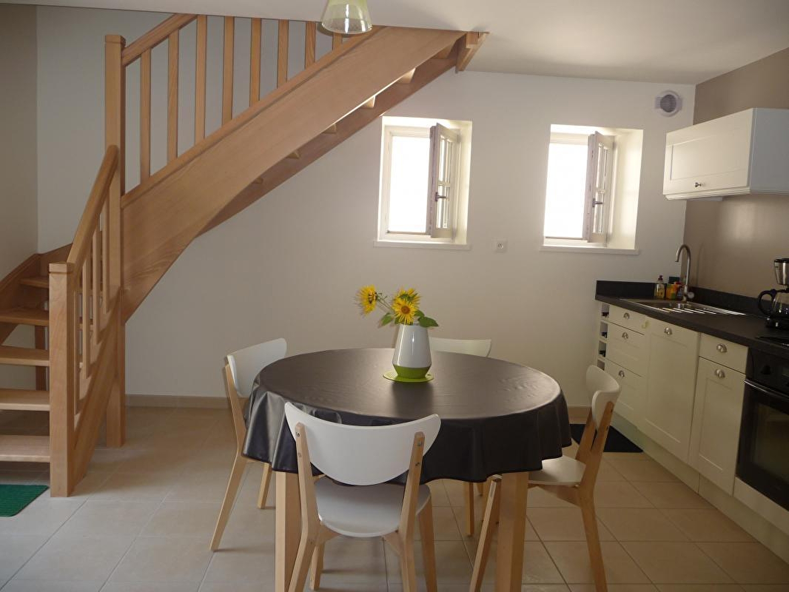 Gite en duplex entièrement rénové dans une partie de la maison de vacances des propriétaires. Situé dans un village calme et agréable, cette maison en pierre apparentes saura vous séduire ! Le gîte dispose au rez de chaussée d'une cuisine équipée et intégrée, d'un salon indépendant (canapé convertible) et d'une salle d'eau (douche et wc). La chambre est aménagée à l'étage avec un lit 2 pl. Vous disposerez d'un salon de jardin avec barbecue. Situé à 30 km de Dole et à 20 km du Triangle d'Or (Arbois, Poligny, Salins les Bains). A proximité de la forêt de Chaux. Un gîte chaleureux à découvrir sans plus tarder.