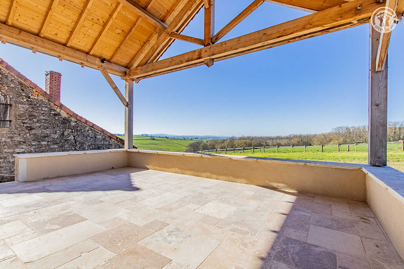 Ravissante demeure traditionnelle de caractère datant du XIXème siècle, très soigneusement restaurée dans les règles de l'art & chargée d'histoire (liée jadis à une importante ferme locale), sise au calme en pleine campagne vallonnée au creux d'un sublime écrin préservé de verdure & nature, en lisière immédiate de pâtures & prairies (avec les célèbres vaches charolaises comme seules voisines privilégiées), non loin du paisible petit village typique de Martigny-le-Comte (& son église romane du XIIème siècle) & de plusieurs vastes forêts sauvages. Belle exposition, juché "en balcon" à flanc de colline, en "belvédère panoramique" dominant un vaste plateau de bucolique bocage. Somptueuse vue dégagée sur la campagne environnante. Cadre & site paysagé d'exception, 100% apaisant & reposant. Magnifiques panorama & paysage rural de carte postale. Confortable gîte de grand standing. Ultra spacieux. Beaux volumes des pièces de vie. Pièces aux dimensions nobles. Très élégant cachet campagnard aux accents contemporains, cossu & raffiné, sublimé par une restauration patrimoniale particulièrement soignée (conservation des anciens murs en pierres, linteaux en pierres & bois, manteaux de cheminée, tomettes etc… d'origine). Énormément de charme. Ambiance très douillette, cosy & cocooning. Large terrasse panoramique abritée. Vaste & agréable jardin engazonné.