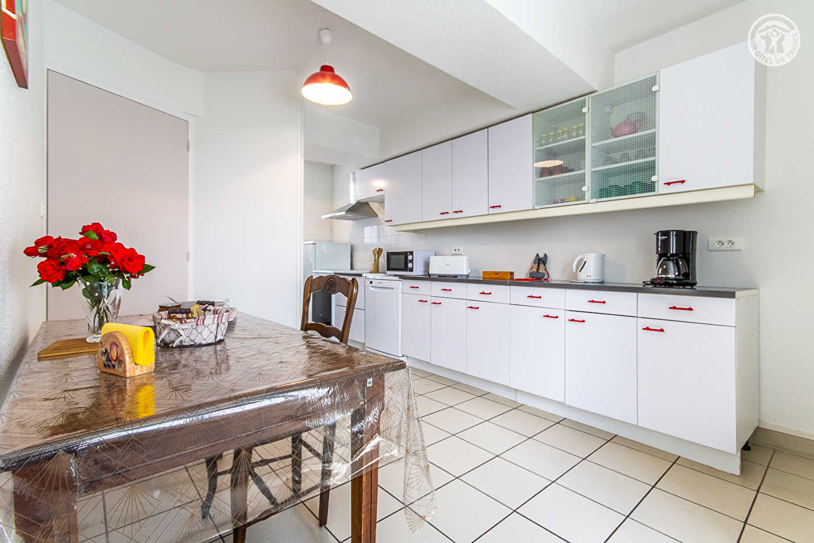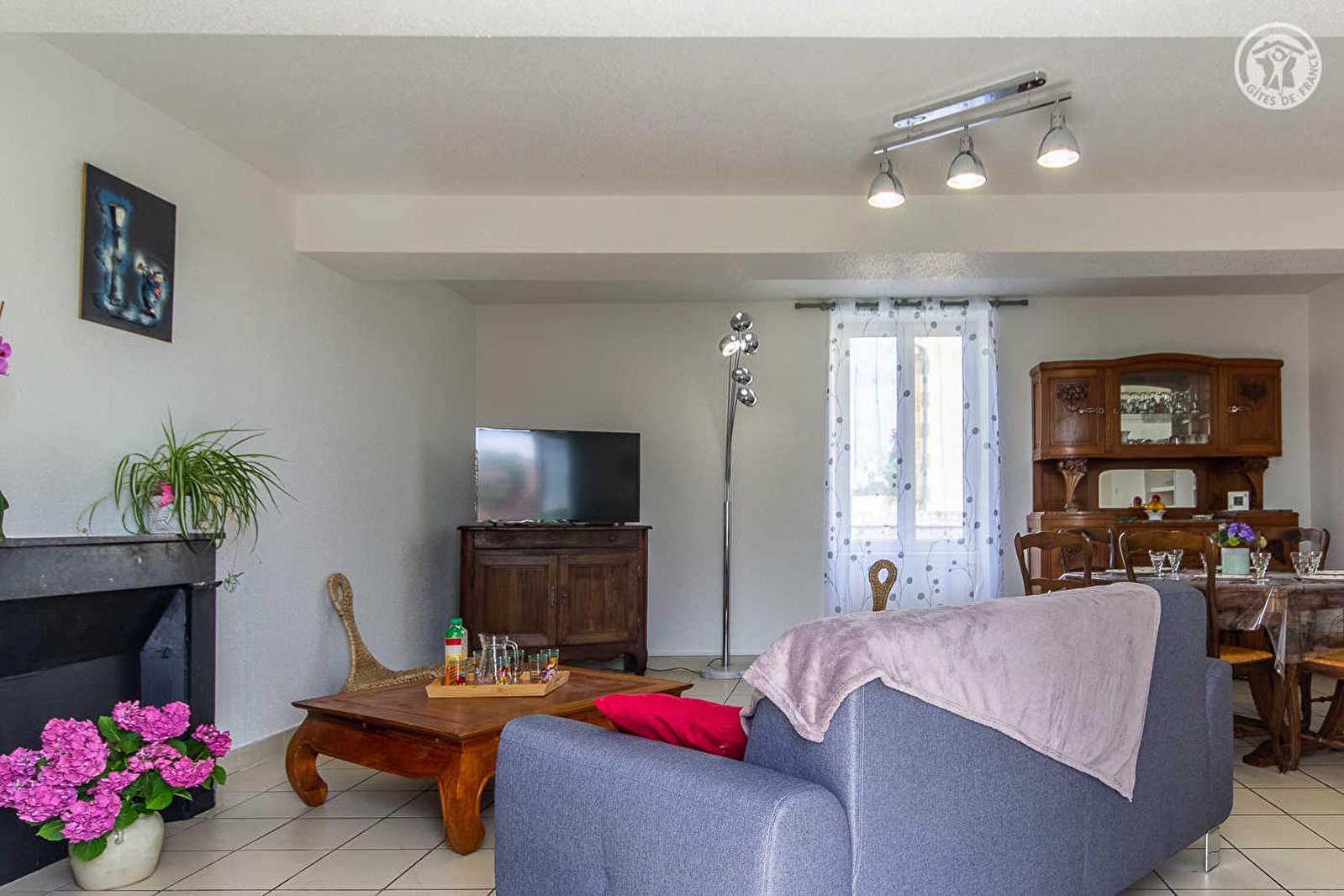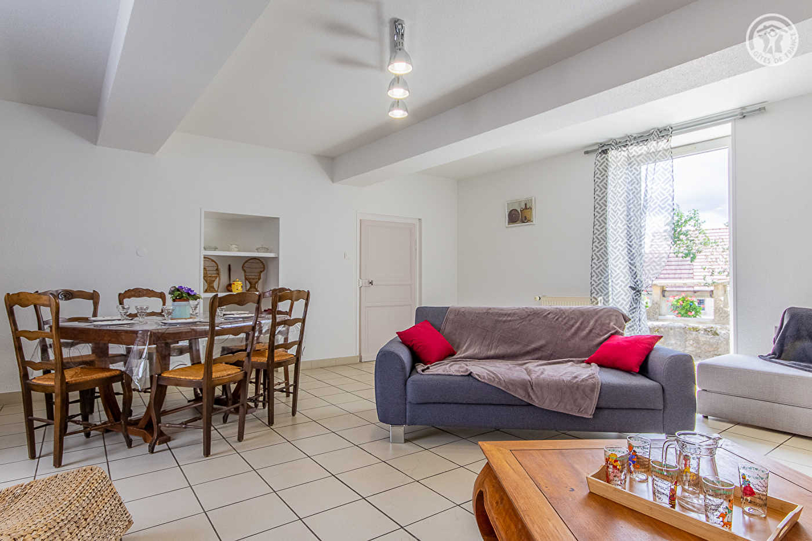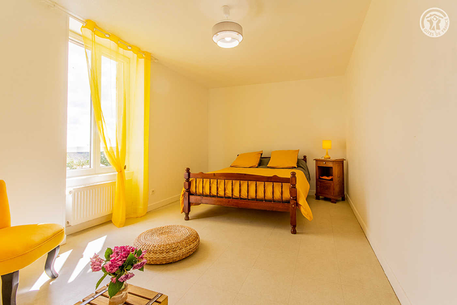 Composition : Maison sur 2 niveaux (avec double entrée N&S). Chauffage gaz. Rdc : cuisine, salon,/séjour (canapé convertible pour couchage 2 personnes en appoint), WC indépendant (lavabo, lave-linge+sèche-linge). A l'étage : 4 chambres (1 lit 2 p. 140x190cm / 1 lit 2 p. 140x190cm / 2 lits superposés 1 p. 90x190cm / 2 lits superposés 1 p. 90x190cm). Terrain clos + terrasse sur gravier + parking privé dans cour. Garage et local vélos fermés privés. Commerces & services 10 km. Gare TGV : Le Creusot 54 km.