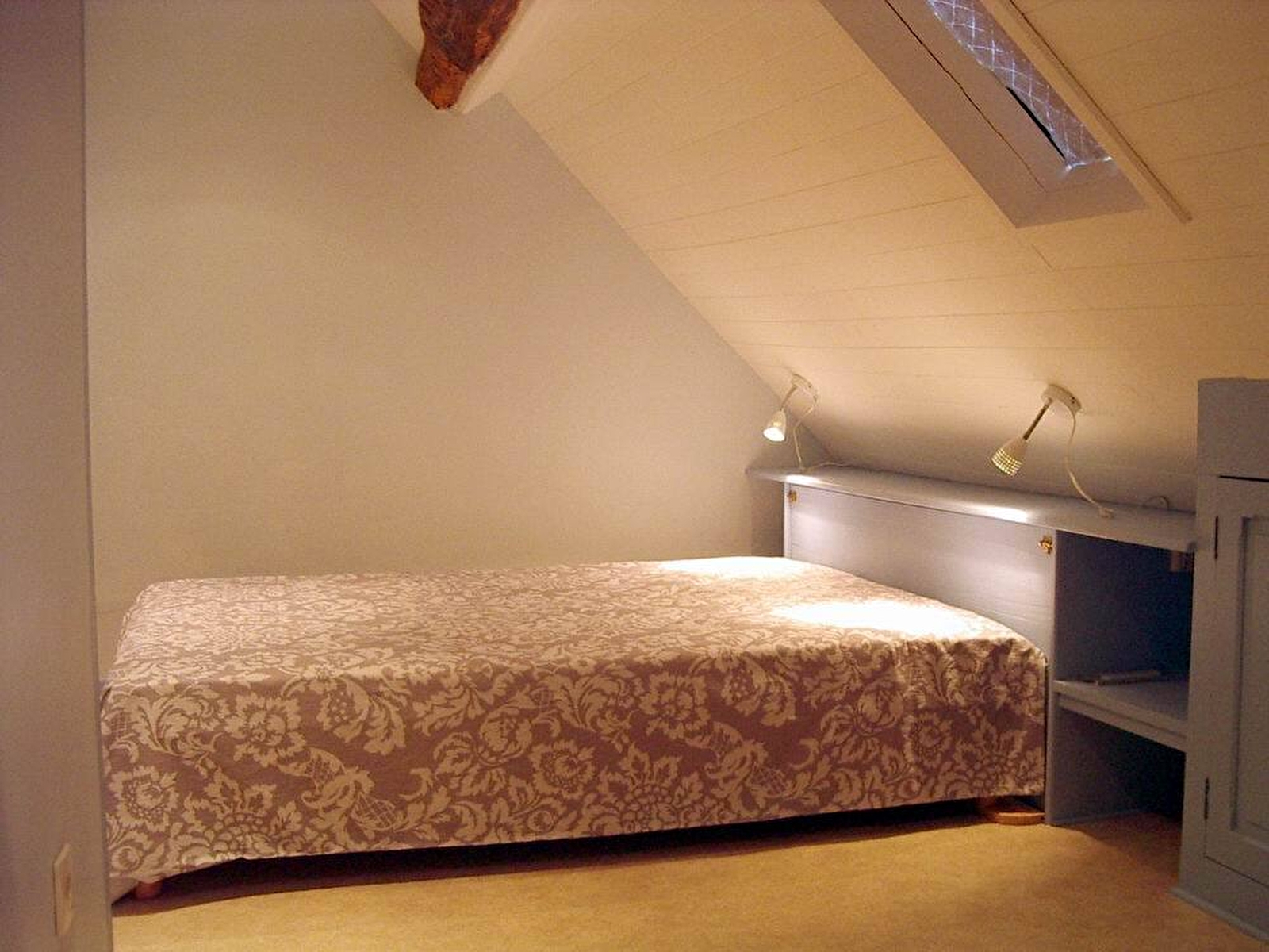 Composition : Maison individuelle sur 2 niveaux. Wifi via boîtier Airbox rechargeable Orange. Chauffage électrique + poêle à bois. Mini lave-linge « portatif ». Rdc : séjour-cuisine-salon, salle d'eau (douche), Wc indépendant. 1er étage : 2 chambres soupentées (lit 2 p. 140x190cm / 2 lits 1 p. superposés de 90x190cm). Terrasse couverte + terrasse sur cour + jardin + local vélos + parking privatifs. Commerces dont Supermarché à 13 km. Gare 27 km.