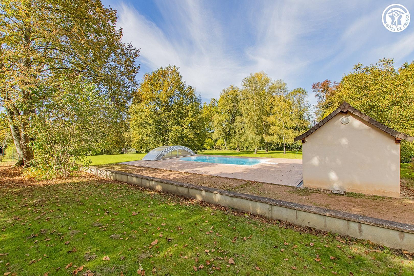 Composition : Maison individuelle. Wifi (fibre). Chauffage central gaz + cheminée. Rdc : cuisine, séjour, salon TV, salon sous véranda, salon musique/bibliothèque (avec piano), 2 chambres (lit 2 p. 200x200cm / lit 2 p. 160x200cm), salle d'eau (douche/Wc), Wc indépendant. 1er étage : 5 chambres (3 avec 1 lit 2 p. 160x200cm / lit 2 p. 200x200cm / lit 2 p. 160x200cm + lit 1 p. 90x190cm) dont 2 en enfilade avec une sdb privée (douche/baignoire/Wc), salle de jeu/détente (avec TV), sdb (baignoire), Wc indépendant. Parc clos (9000m²) + terrasse + piscine (9x5m / abritée sous dôme) + terrain pétanque + ping-pong + balançoire + filet badminton/volley + parking privés. Petits commerces & petit supermarché 5.5 km. Supermarché 7 km.