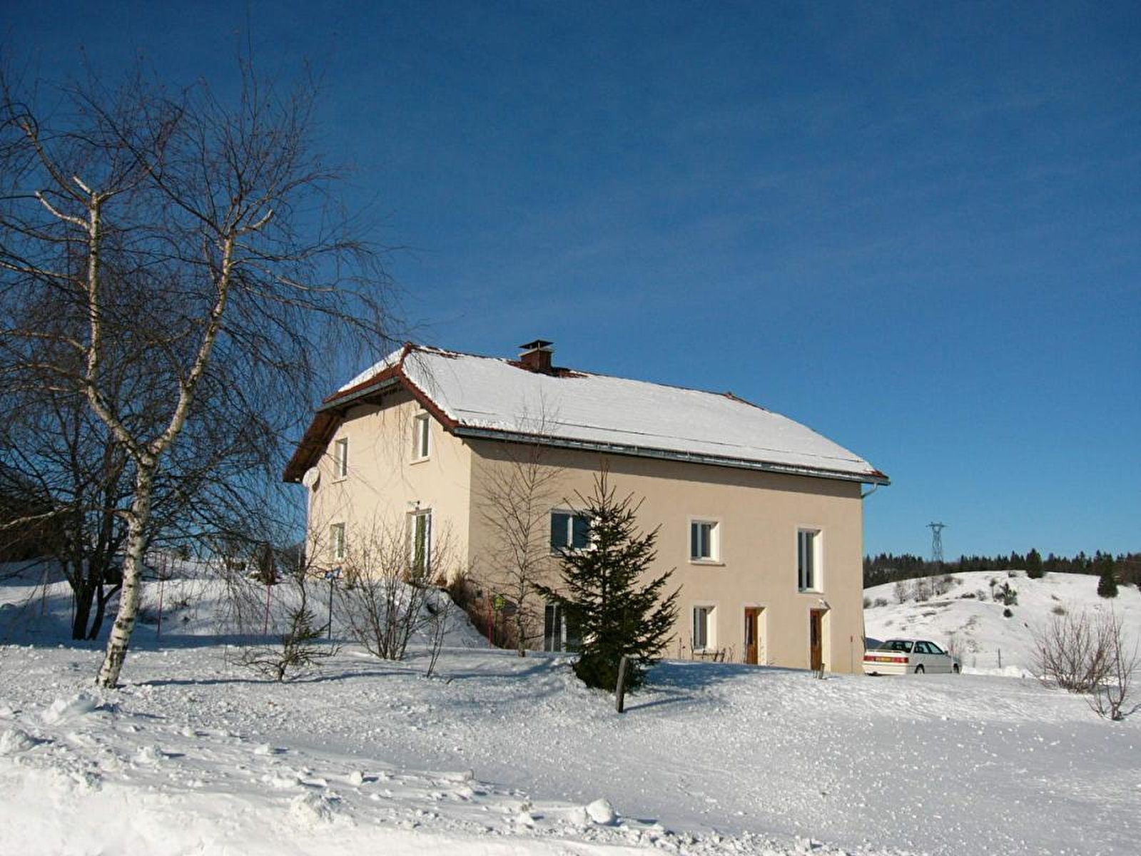 Appartement de plain-pied dans la maison du propriétaire face aux sommets du Jura avec entrée indépendante, offrant tout confort et belles prestations. Salon-séjour de 33 m², canapé clic-clac 2 pl, TV couleur et DVD. Cuisine intégrée toute équipée, réfrigérateur-congélateur. Ch1: 1 lit 2 pl, 2 lits 1 pl. Salle de bain, WC indépendant. Local pour skis et vélos dans l'entrée. Terrain attenant non clos, salon de jardin, barbecue, parking privé, jeux pour enfants. Toutes charges comprises. Ski de fond à 50 m et ski de piste à 500 m. Animaux acceptés sur demande. Wifi