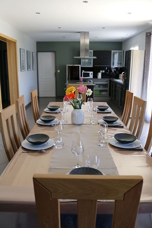 Cette spacieuse maison située au calme au fond d'une impasse sera parfaite pour vous retrouver en famille ou entre amis. Elle se compose au RDC d'une grande pièce de vie avec cuisine toute équipée, salle à manger, salon avec TV (canal +, lecteur DVD avec nombreux DVD mis à disposition), d'une chambre avec 1 lit en 140, d'une salle d'eau avec cabine de douche et de WC indépendant. A l'étage, coin salon en en mezzanine avec TV, une chambre avec 2 lits simples et 2 autres chambres avec chacune un lit en 160, une salle de bain avec baignoire et WC. Côté extérieur, vous pourrez profiter d'une terrasse de 50 m2 équipée d'une pergola bioclimatique, avec salon de jardin et plancha et d'un vaste terrain avec jeux pour enfants (petite cabane et balançoire). Un garage est également à votre disposition et parking privé sur place. Volets dans les chambres. Idéalement situé, vous pourrez découvrir les villes de Poligny et Arbois, respectivement connue pour le Comté et le vin, la grotte des Moidons ou vous baignez dans le lac de Chalain. Note : vous pourrez accéder à 800 mètres à une supérette et à une fromagerie pour déguster le fameux Comté!
