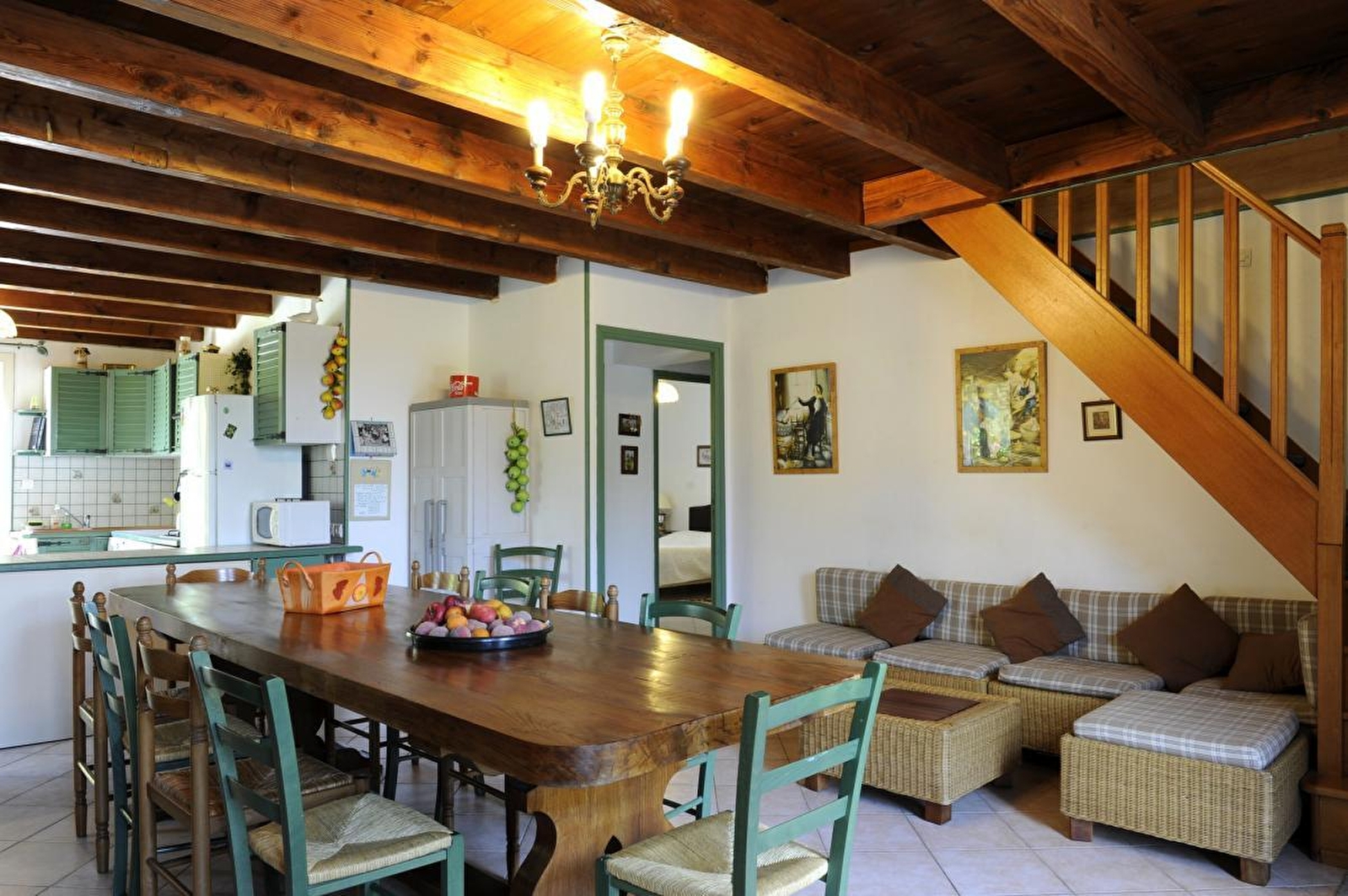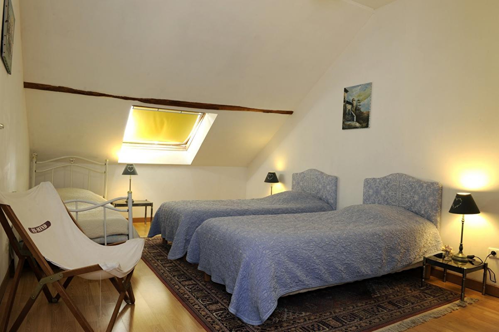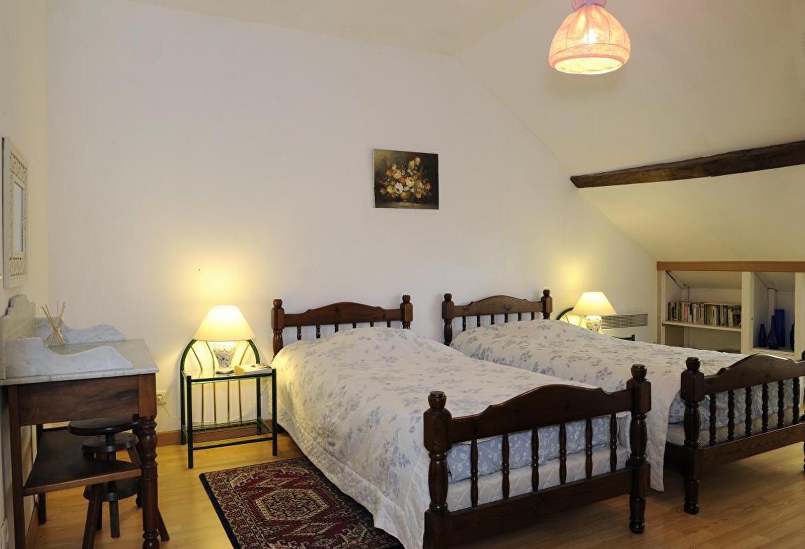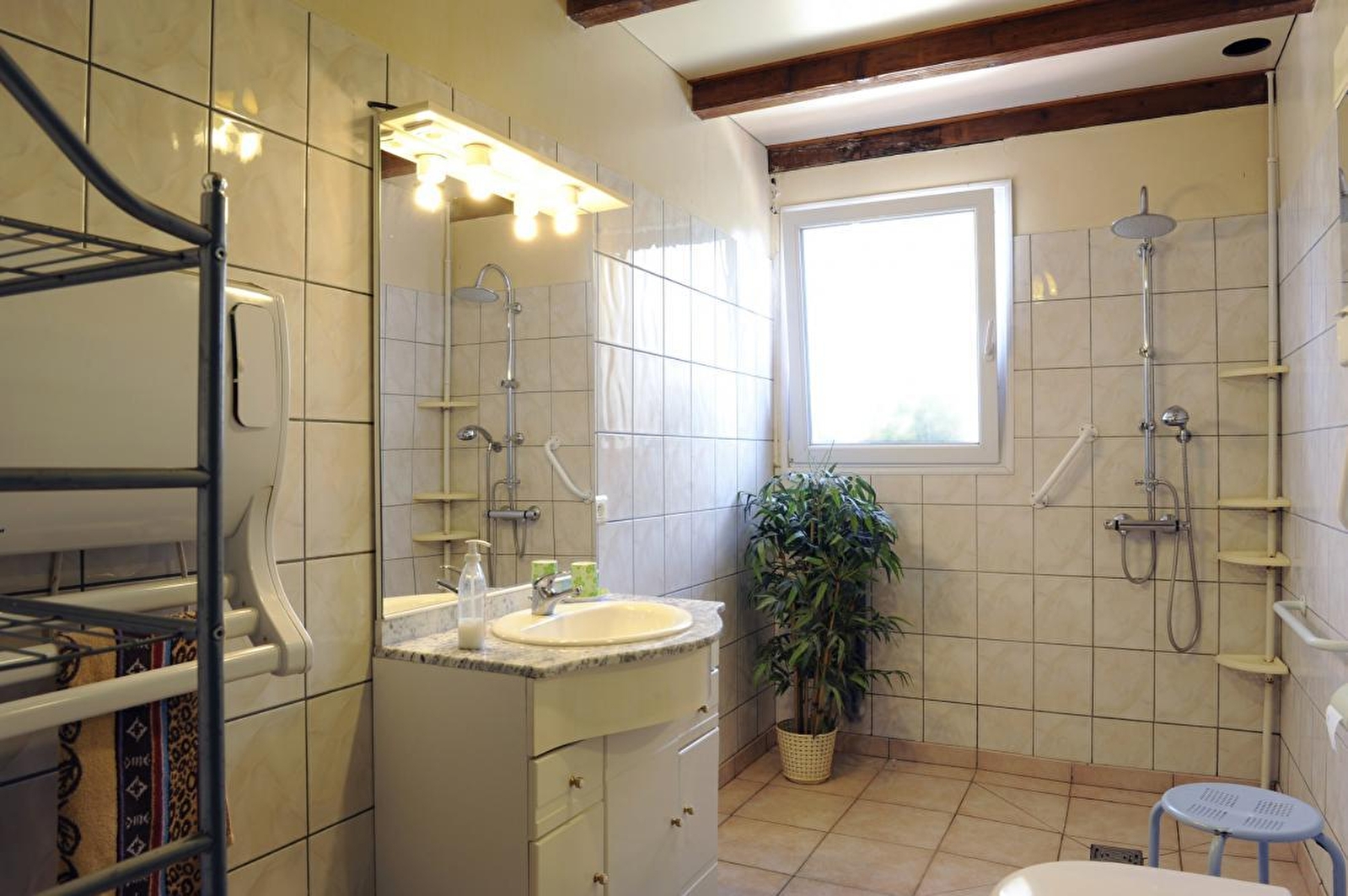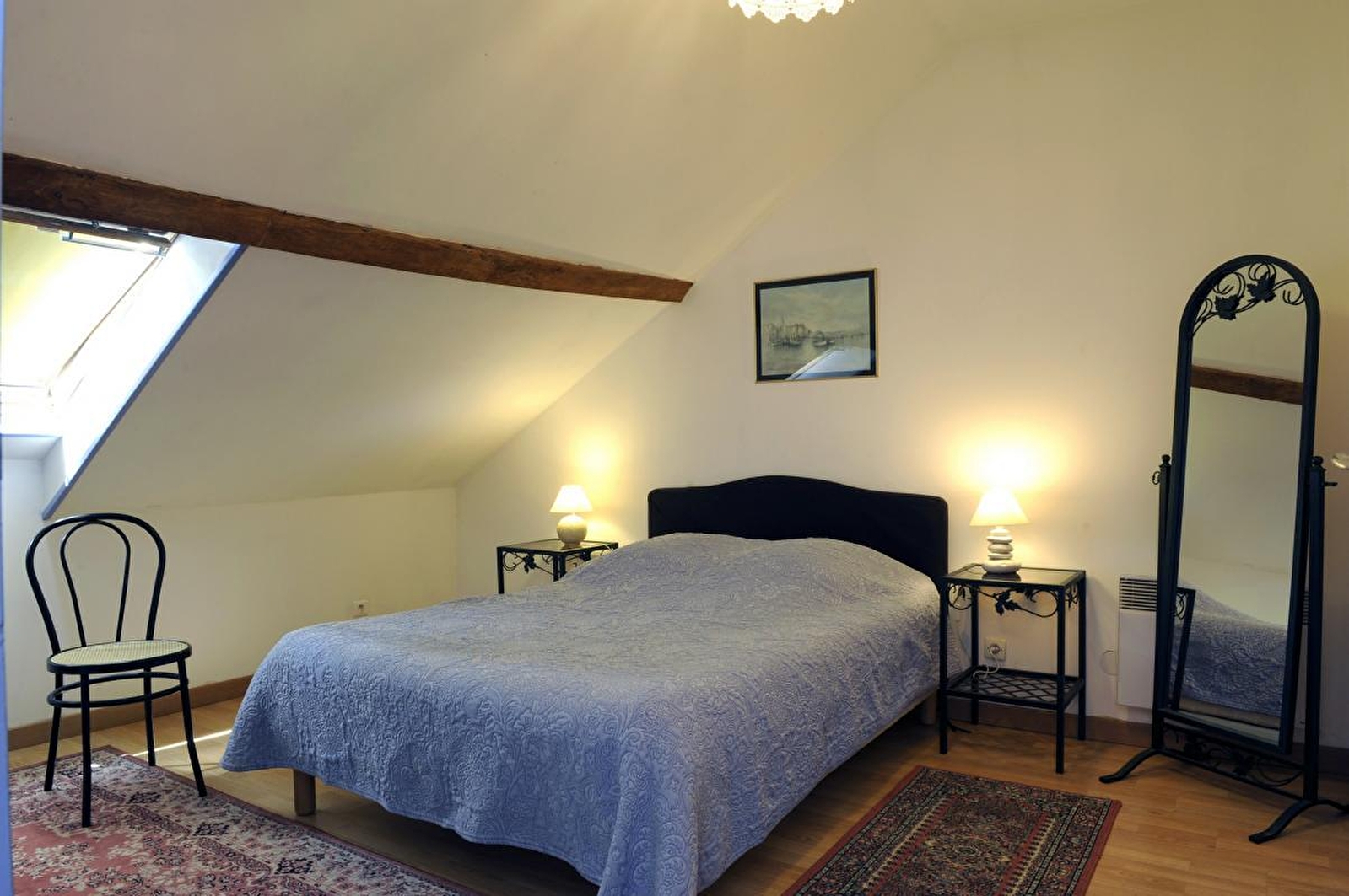 Composition : Maison individuelle jouxtant la maison des propriétaires (indépendance totale sans vis-à-vis). Wifi. Chauffage électrique. Rdc : séjour-cuisine-salon, 2 chambres (lit 2 p. 140x190cm / 2 lits 1 p. 90x190cm), salle d'eau PMR (douche/Wc), Wc PMR indépendant. 1er étage : 3 chambres (lit 2 p. 140x190cm + 1 lit 1 p. 90x190cm / 2 lits 1 p. 90x190cm / 3 lits 1 p. 90x190cm), salle d'eau (douche/Wc). Triple terrasse (dont 1 couverte avec cuisine d'été & sèche-linge) + jardin (1000m²) + parking privés. Toutes commodités 10 km.