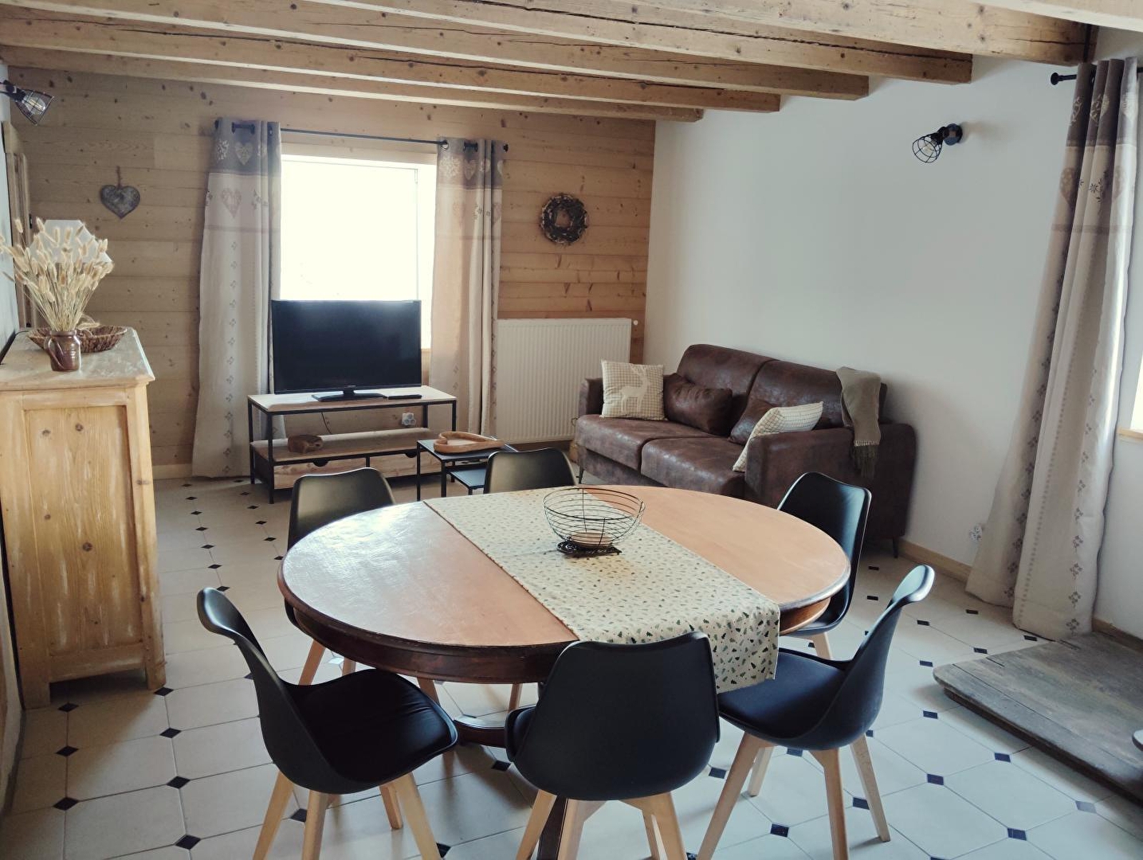 Au coeur du PARC NATUREL du HAUT-JURA et des MONTAGNES du JURA, aménagé dans une ancienne ferme typiquement jurassienne datant des années 1700, ce logement entièrement rénové, vous charmera par son atmosphère cosy et son cadre enchanteur.Situé à l’orée du bois, dans un écrin de verdure, tout en étant proche du centre village de Prémanon, de ses pistes de ski et sentiers de randonnée, vous pourrez profiter d’une nature omniprésente qui vous garantit calme et authenticité. Ici, le vent souffle un air pur et vivifiant et le cadre vous invite à vous reposer et vous ressourcer. Découvrez notre gite et pénétrez dans un lieu chargé d’histoire et de cachet ou la pierre, le vieux bois, l’aménagement chaleureux et les équipements modernes, feront de vos vacances une parenthèse enchantée. L’appartement de 100m2 est proposé pour 6 personnes, situé sur 2 niveaux il vous offre : Au rez de chaussée : - une cuisine toute équipée ; Grand frigo, congélateur, four, micro-ondes, lave-vaisselle, plaques de cuisson - Un salon / salle à manger avec coin repas, canapé lit bed express en 140cm, TV, WIFI - WC et buanderie avec lave-linge A l’étage : - chambre « L’Ourson » avec 1 lit en 180cm, TV, salle d’eau privative avec douche et wc - chambre « Les Louveteaux » avec 1 lit en 160cm et 1 lit fauteuil en 90cm, TV, salle d’eau privative avec douche et wc Pour votre confort les lits seront faits à votre arrivée – LE LINGE DE TOILETTE N’EST PAS FOURNI Côté Extérieur Terrain attenant avec l’été : salon de jardin, transats, parasol, barbecue Vous pouvez garer vos véhicules à proximité de l'appartement