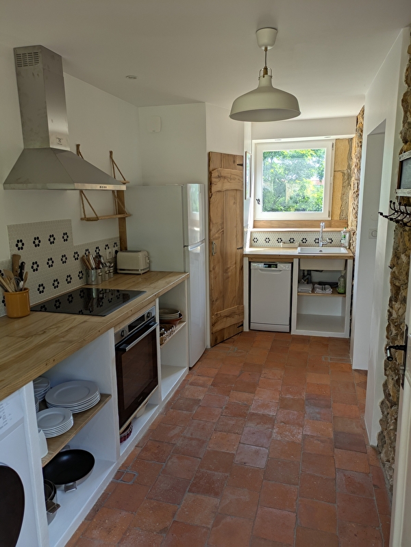 La cuisine, entièrement équipée, vous permettra de cuisiner comme à la maison : plaque de cuisson, four, réfrigérateur, cafetière, grille-pain, ustensiles… tout y est !