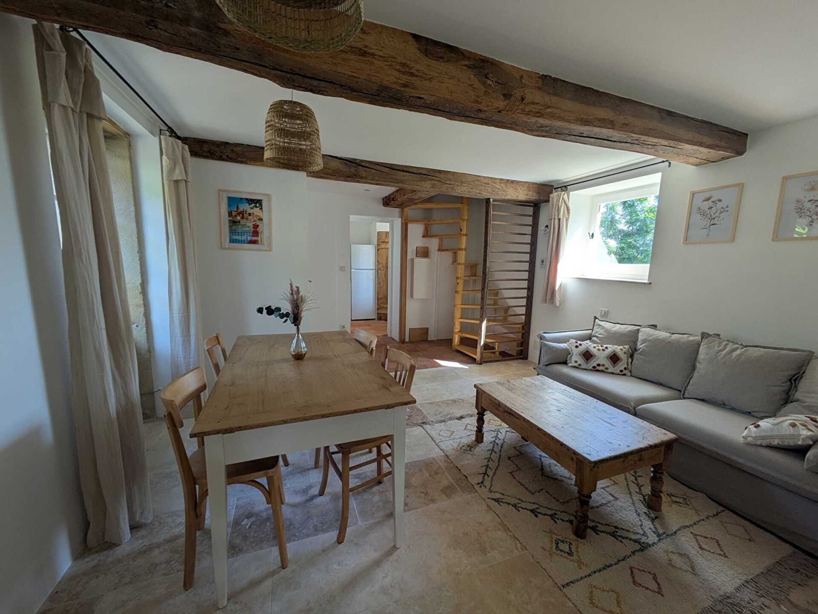 Au rez-de-chaussée, le salon vous invite à la détente avec un canapé convertible 140x190cm (idéal pour deux couchages en plus de la chambre), une salle à manger, ainsi que des toilettes séparées.