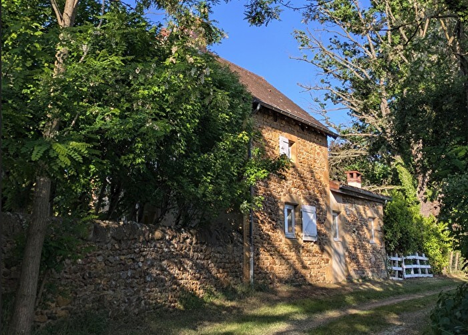 Au cœur d'un parc arboré, vous trouverez notre petit gîte, ancienne fermette typique du Brionnais, à quelques mètres de notre maison, ancienne grange en cours de réhabilitation.