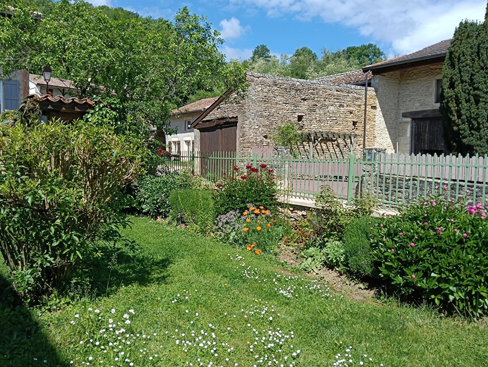 Composition : Maison de village mitoyenne voisinant la maison des propriétaires (totale indépendance). Wifi (fibre). Chauffage central gaz. Rdc : cuisine, séjour-salon, salle d'eau (douche). Demi étage (2 x 3 marches) : 2 chambres (lit 2 p. 140x190cm / 2 lits 1 p. 80x190cm), Wc indépendant. Jardin clos (150m²) + terrasse + parking privés. Grand garage en commun à 10m du gîte (2 places possible / local vélos). Supérette & petits commerces 4.5 km. Supermarché 9 km. Toutes commodités 11 km.