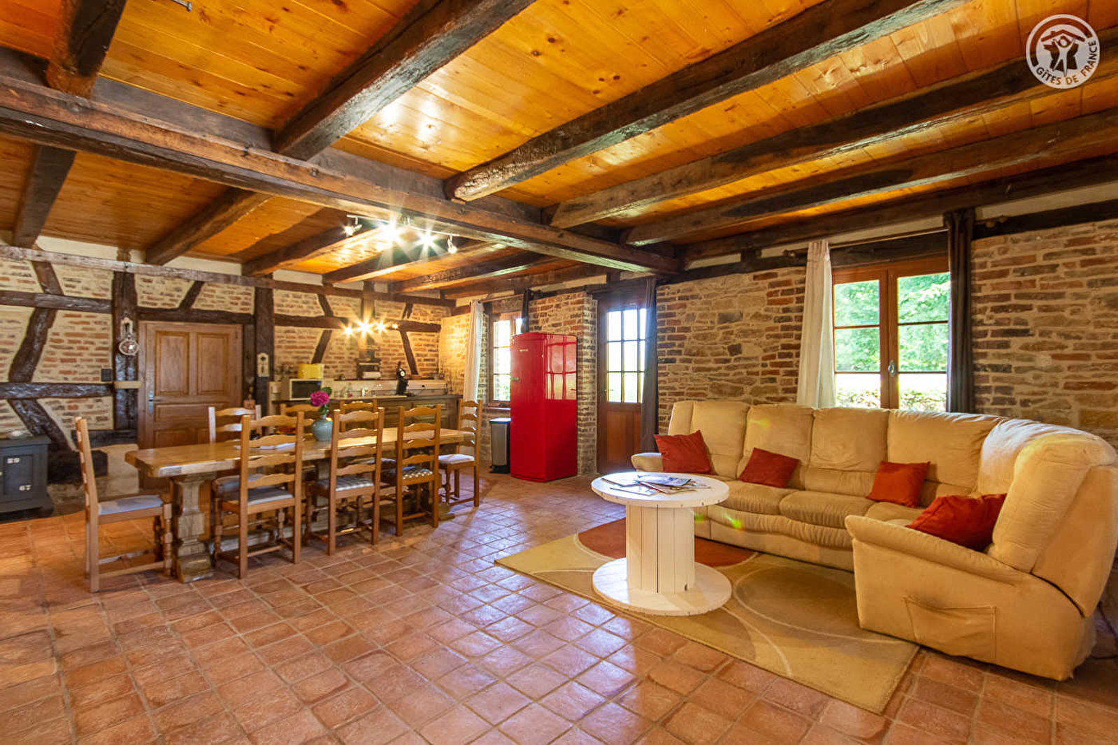 Jean-Marc & Béatrice vous accueillent au sein d'une authentique demeure bressane de caractère de 1850 - riche d'une élégante architecture traditionnelle en briques & pans de bois - soigneusement restaurée et chargée d'histoire (tout à la fois ancienne forge de village et fermette). Au creux d'un hameau résidentiel niché en lisière de champs, forêts & prairies, bordant le centre du charmant petit bourg typique & commerçant de Branges (village fluvial traversé par la voie verte disposant d'un ravissant port de plaisance avec écluse sis en pleine nature dans un écrin préservé de verdure) lové sur les rives de la Seille (la plus importante rivière en Bresse, à deux pas du gîte), remarquable écosystème en large partie classé en Zone Natura 2000 (réserve d'oiseaux migrateurs, espèces végétales rares, nombreux poissons dont les célèbres silures, animaux et faune sauvage…), navigable sur 39 km entre Louhans et la Truchère au creux de magnifiques paysages, proposant de multiples activités de loisirs (randonnées, croisière de plaisance, canoë kayak, pêche….). Spacieux gîte de bon confort. Grande pièce de vie. Chaleureux cachet campagnard - entre tradition et modernité - alliant le charme de l'authenticité et l'ambiance dépaysante d'une ancienne demeure (belle restauration patrimoniale : conservation de l'ancien soubassement du brasier de la forge en pierres, briques, poutres, tommettes d'origine…). Terrasse abritée et large agréable jardin aménagé, aire de jeux privilégiée pour les enfants, proposant un appréciable petit espace de repos-détente.