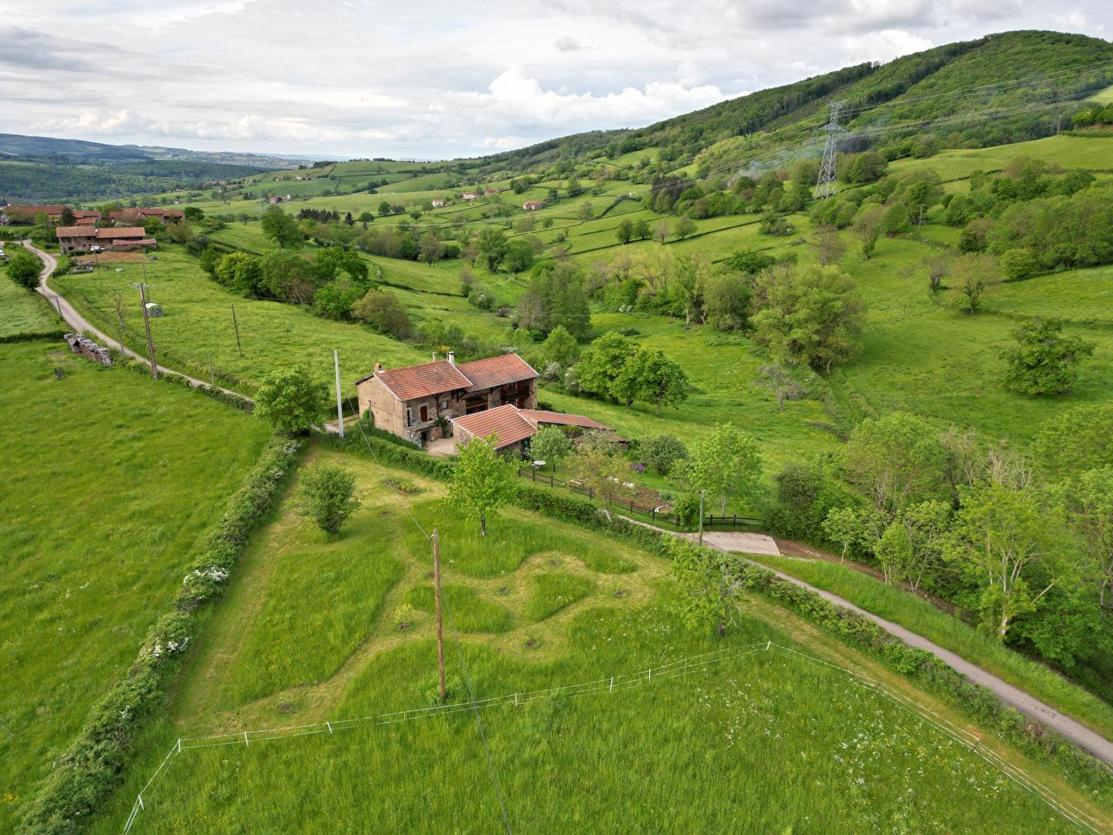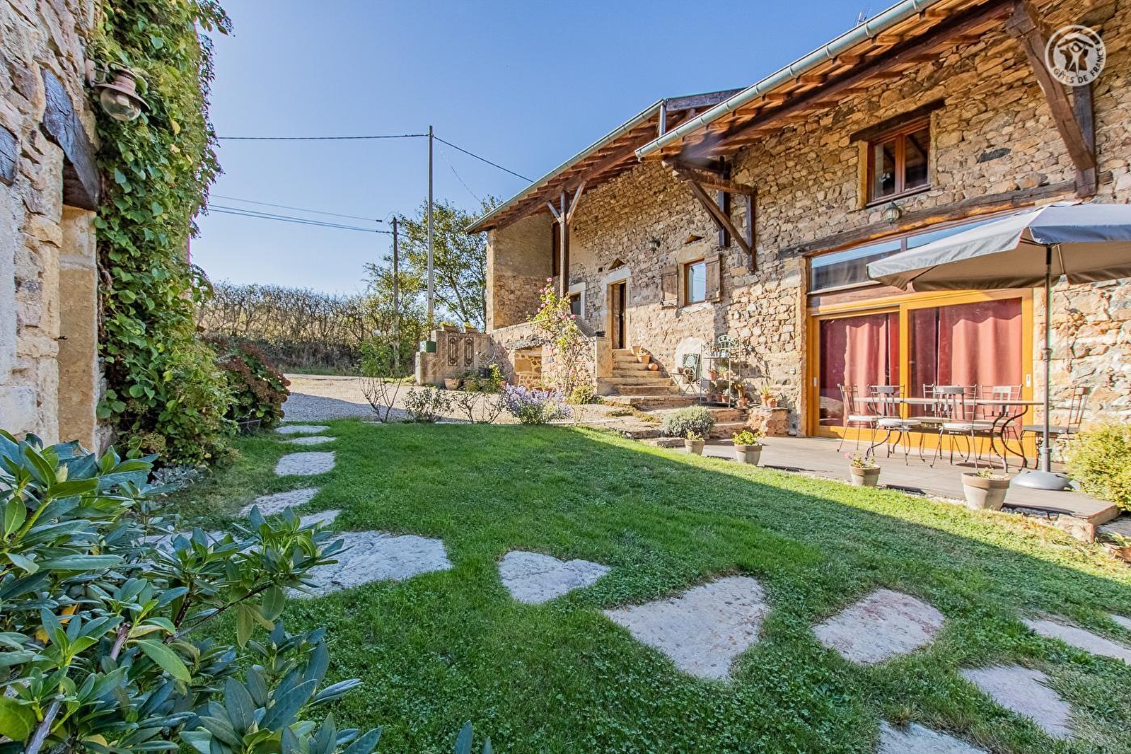Authentique ravissante ferme typique de caractère de 1870 soigneusement restaurée dans les règles de l'art - dotée d'une "galerie mâconnaise" traditionnelle - sise au calme en bordure d'une ruelle en impasse, surplombant "en balcon", à flanc de colline, un bucolique vallon de bocage lové sous les crêtes boisées d'un vaste massif forestier. Totale tranquillité en pleine campagne clunisoise vallonnée, au sein d'un petit hameau rural, agricole & résidentiel, niché "en belvédère" sur un plateau exposé dominant la verdoyante vallée du Valouzin. Apaisant cadre champêtre & naturel préservé de montagne douce, proche des vignobles. Magnifique panoramas & paysages. Superbe vue dégagée sur la campagne environnante & les monts du Clunisois. Spacieux gîte de très bon confort. Chaleureux cachet campagnard aux accents contemporains sublimé par une restauration patrimoniale soignée (élégant manteau de cheminée en pierre, poutres & charpentes, linteaux & murs en pierres etc… d'origine). Énormément de charme & caractère dans une douce ambiance "maison de famille". Cosy & ultra douillet. Agréable terrasse exposée & ombragée. Vaste jardin abritant un verger fruitier (pommiers, pruniers, poiriers, petits fruits rouges, pêches de vignes / cueillette possible avec accord du propriétaire) jouxtant une pâture accueillant les paisibles vaches charolaises en saisons.