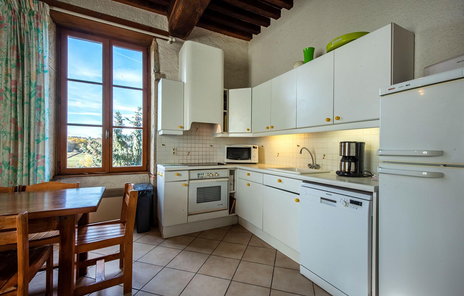 Composition : Maison comprenant 2 gîtes (total indépendance sans vis-à-vis) jouxtant l'habitation du propriétaire (en annexe). Gîte au 1er étage. Wifi. Chauffage électrique et poêle à bois. Cuisine séjour salon, 2 chambres (2 lits 1 personne 90x190cm / lit 2 personnes 140x190cm), salle d'eau (douche), Wc indépendant. Buanderie au rdc. Terrasse sur cour (en gravier) + jardin privés (espace réservé). Terrain clos (avec table ping-pong) + piscine chauffée (9x4.5m) en commun pour les 2 gîtes. Parking privé ombragé. Commodités 9 km.