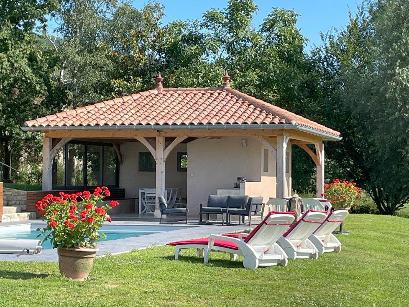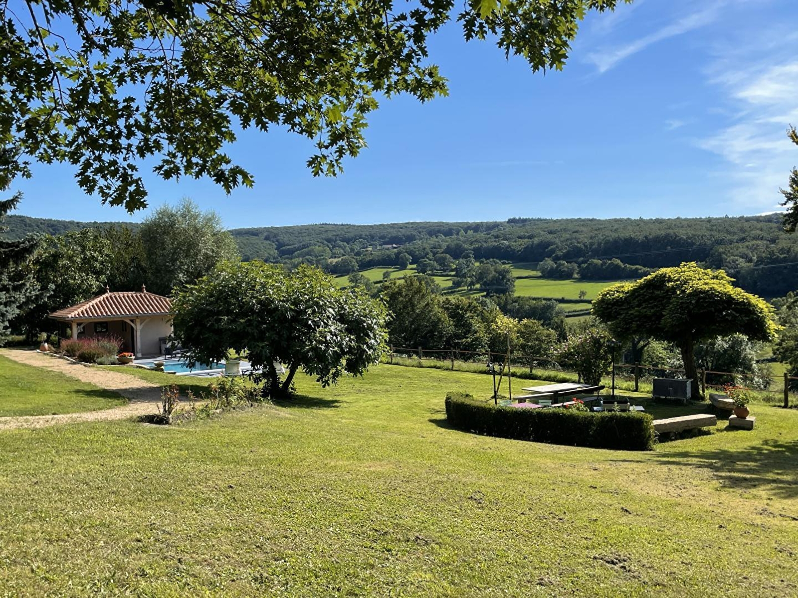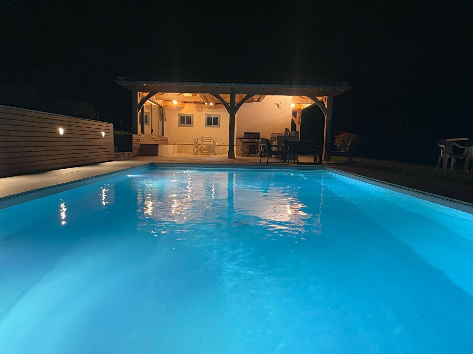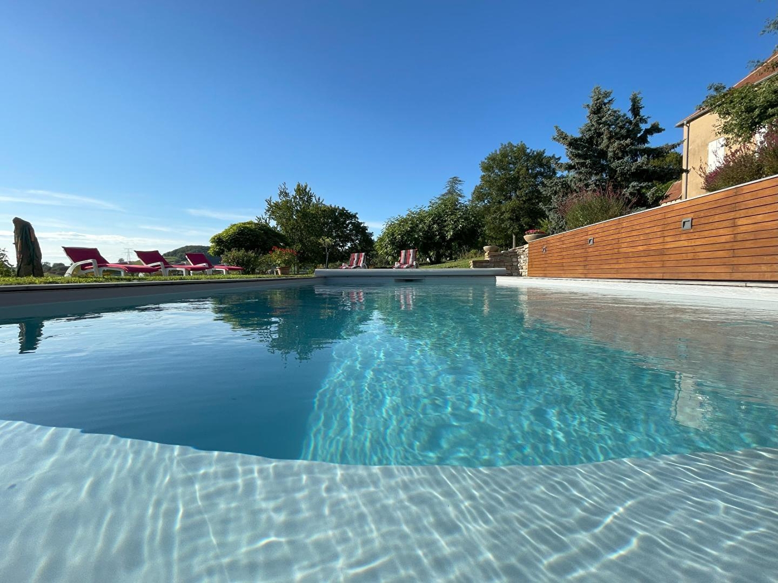 Bernard vous accueille au sein d'une élégante authentique demeure de caractère de 1690 chargée d'histoire, propriété familiale depuis le XVIIIe, ancienne ferme viticole liée jadis à l'abbaye de Cluny, sise au calme en pleine campagne vallonnée au sein d'un paisible petit hameau adossé à flanc de coteau exposé, au creux d'un bucolique cirque de bocage blotti sous les collines boisées dominant Cluny. Magnifique écrin préservé de nature & verdure, entre prairies, vignobles & forêts, littéral havre de paix & repos lové au cœur d'un site classé "Zone Natura 2000". Belle vue dégagée sur la campagne environnante. Superbes panorama & paysages. Exceptionnel domaine privé de 30 ha, en très large partie "naturel" (disposant entre autres d'un étang de pêche avec carpes & gardons et d'une grande forêt parsemée de sentiers de randonnées), comprenant un agréable parc clos de 5000m² aux arbres centenaires soigneusement aménagé (accueillant une ânesse, un poney & un arboretum riche de plus d'une dizaine de variétés) doté d'une belle piscine chauffée (9x4.5m) et de nombreux espaces ludiques de repos & détente. Absolus calme & tranquillité. Spacieux gîte de bon confort. Beaux volumes. Chaleureux cachet campagnard alliant l'esprit d'une "maison de famille" et l'ambiance dépaysante d'une ancienne demeure (plafonds à la française, linteaux de fenêtre en pierres d'origine…). Large terrasse (en gravier) exposée & ombragée sous les arbres & agréable jardin privatifs.
