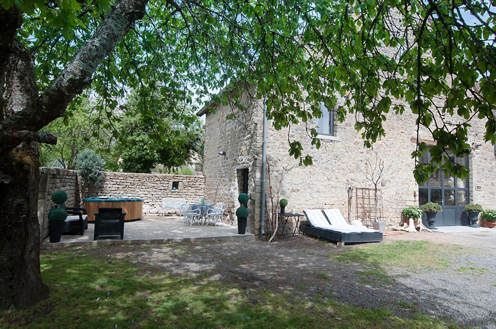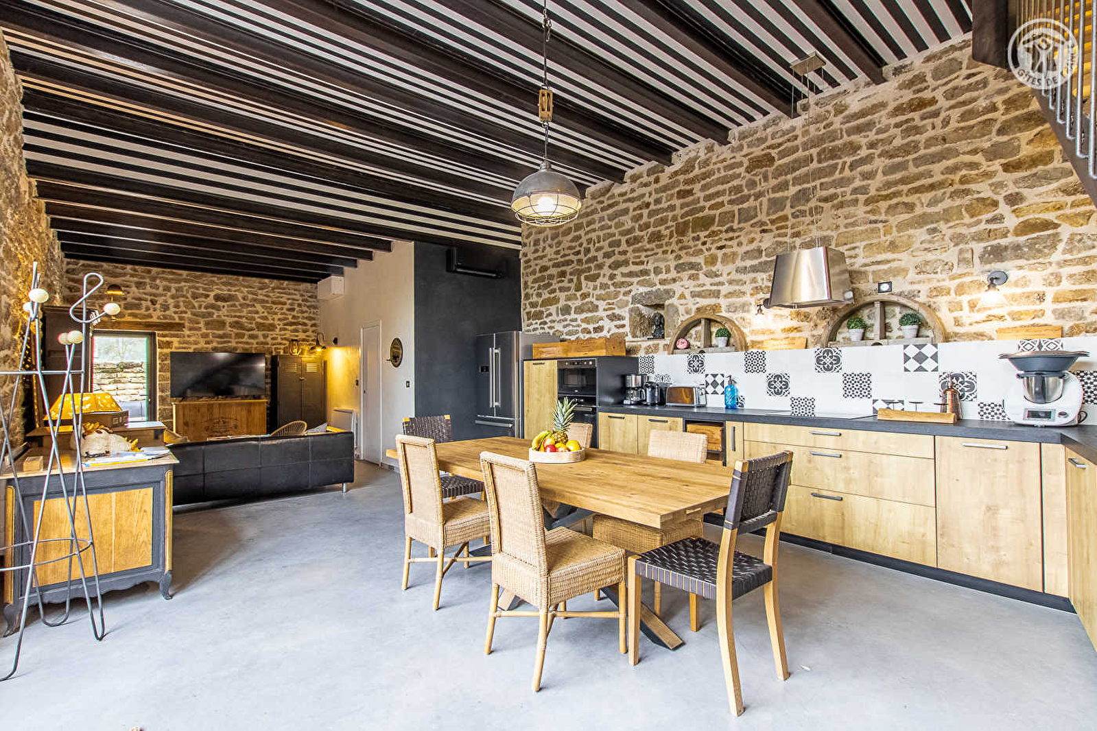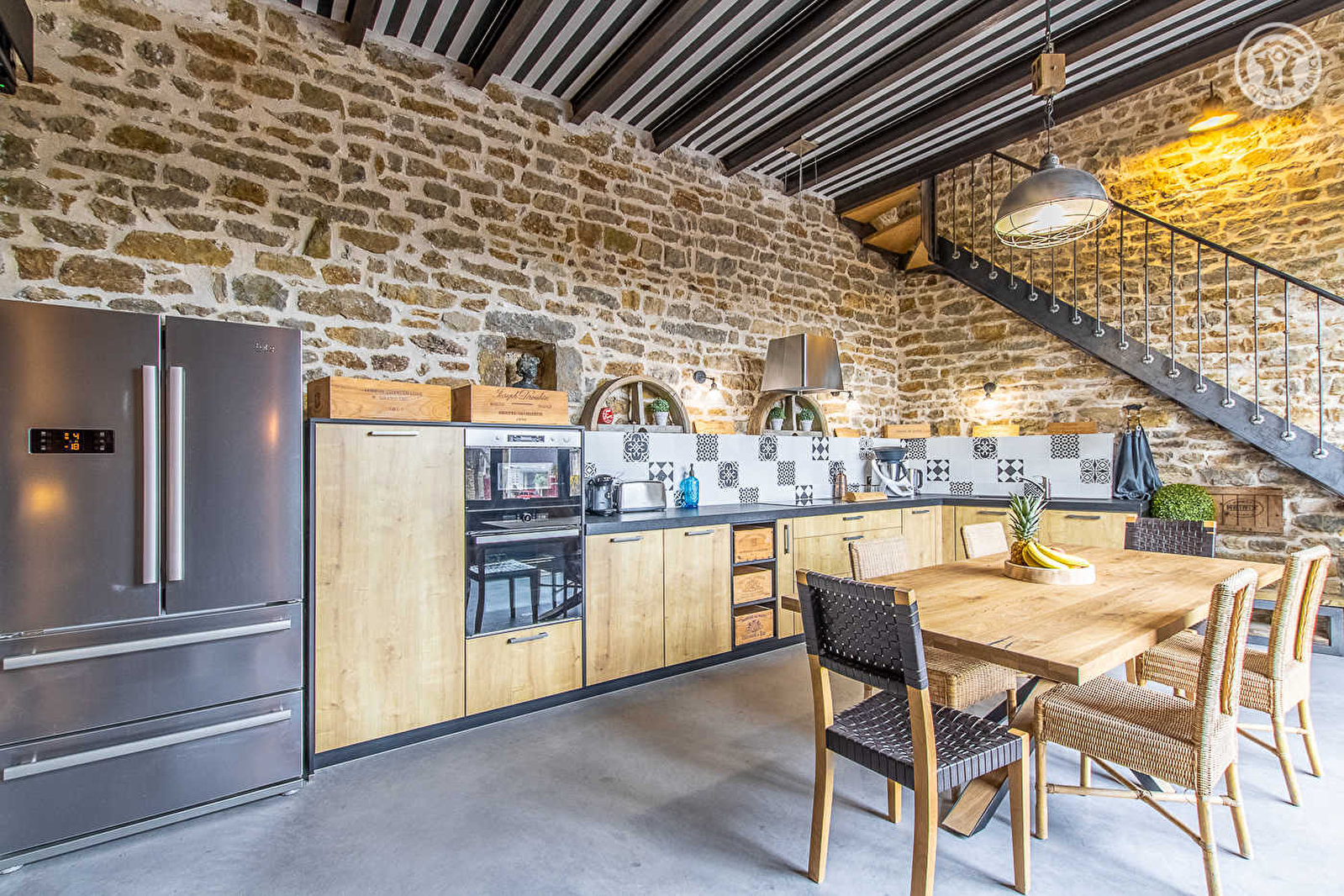 Jennifer & Éric vous ouvrent les portes d'un authentique pressoir de caractère du XIXe, soigneusement restauré dans les règles de l'art, sis sur une propriété pétrie d'histoire (ancien domaine viticole parfaitement réhabilité). Totale tranquillité en bordure de ruelle & prairie (accueillant de paisibles vaches charolaises en saisons), au cœur d'un pittoresque village viticole du Couchois blotti à flanc de coteau sud-est exposé que domine un élégant château des XIIIe & XVIe lové sur une motte féodale (comprenant un des rares ensembles, cuverie & cave, typique du XVIIIe en Bourgogne). Niché en pleine campagne sur le tracé de l'ancienne voie romaine Agrippa au creux d'un bucolique vallon de vignobles, prairies & collines boisées, le village dispose d'un patrimoine notable et jouit d'un magnifique cadre paysagé vallonnée. Spacieux gîte de grand confort. Grande pièce de vie "cathédrale" baignée de lumière par une imposante verrière. Chaleureux cachet contemporain alliant l'esprit industriel d'un littéral "loft" et ambiance "campagne & brocante chic", sublimé par les murs en pierres & linteaux en bois d'origine. Énormément de charme, style & caractère. Cosy & cocooning. Équipement complet de grande qualité. Large terrasse intimiste, exposée & ombragée, dotée d'un spa extérieur 4 places (abrité sous pergola), ouvrant sur un agréable jardin arboré & soigné bordé d'un historique mur d'enceinte (mini verger : cerisiers, pommier, poirier, pruniers…). Belle vue dégagée sur la campagne environnante.