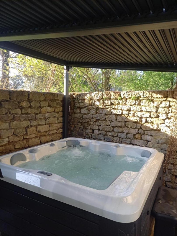 Composition : Maison mitoyenne à l'habitation propriétaires (indépendance totale). Chauffage Pompe à Chaleur. Climatisation. Wifi. Buanderie en accès extérieur. Rdc : séjour-cuisine-salon, salle d'eau (douche/Wc). 1er étage : 2 chambres avec TV (lit 2 p. 160x200cm électrique / lit 2 p. 160x200cm), Wc indépendant. Terrasse privée avec spa 4 p. (abrité sous pergola). Jardin + cour en commun. Parking privé. Local vélos. Location vélos possible: 10€/p. la semaine. Commodités 2.5 km.