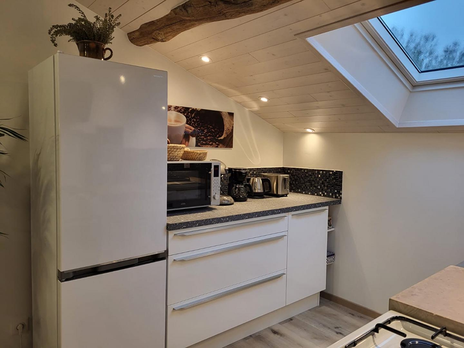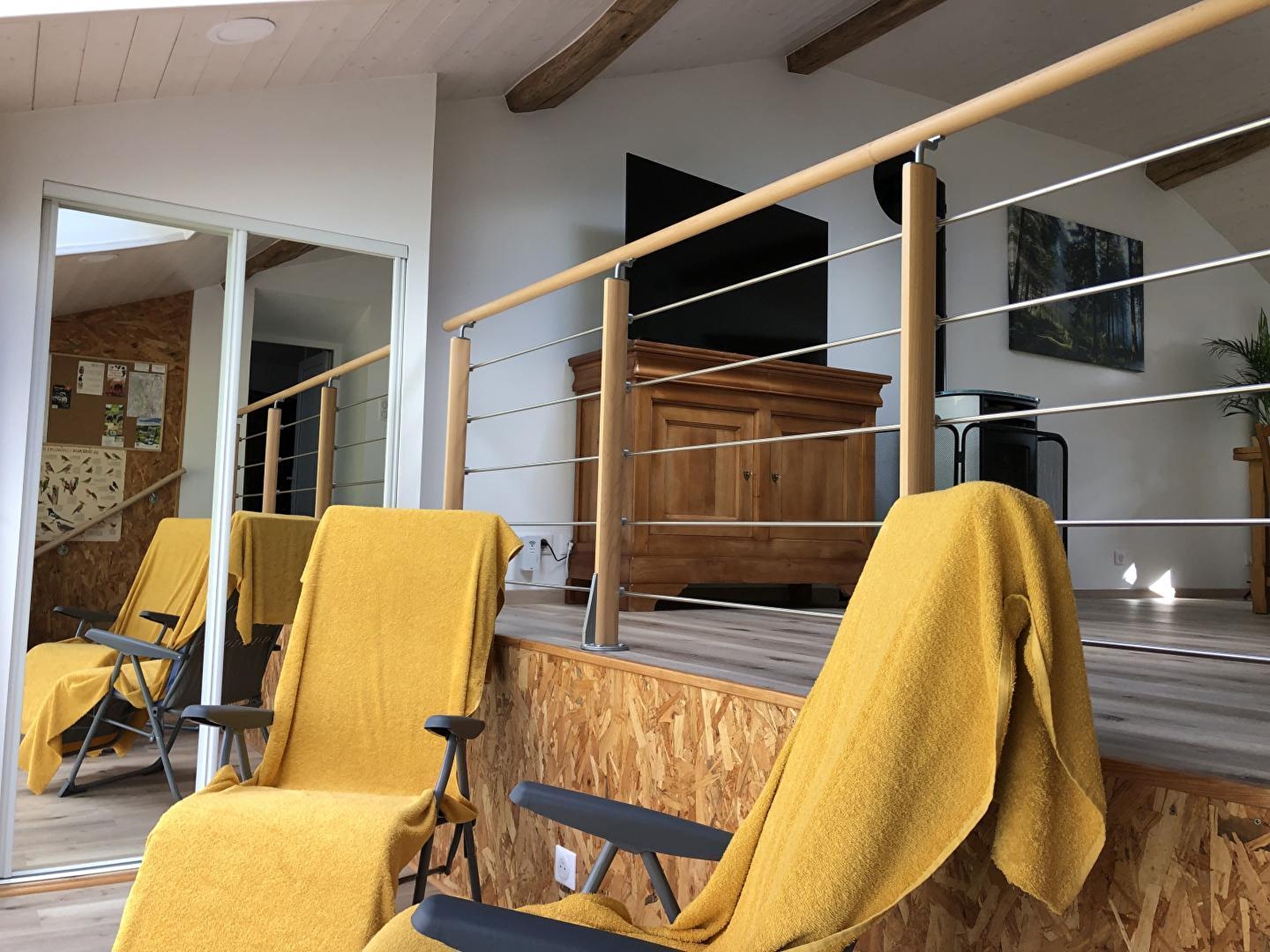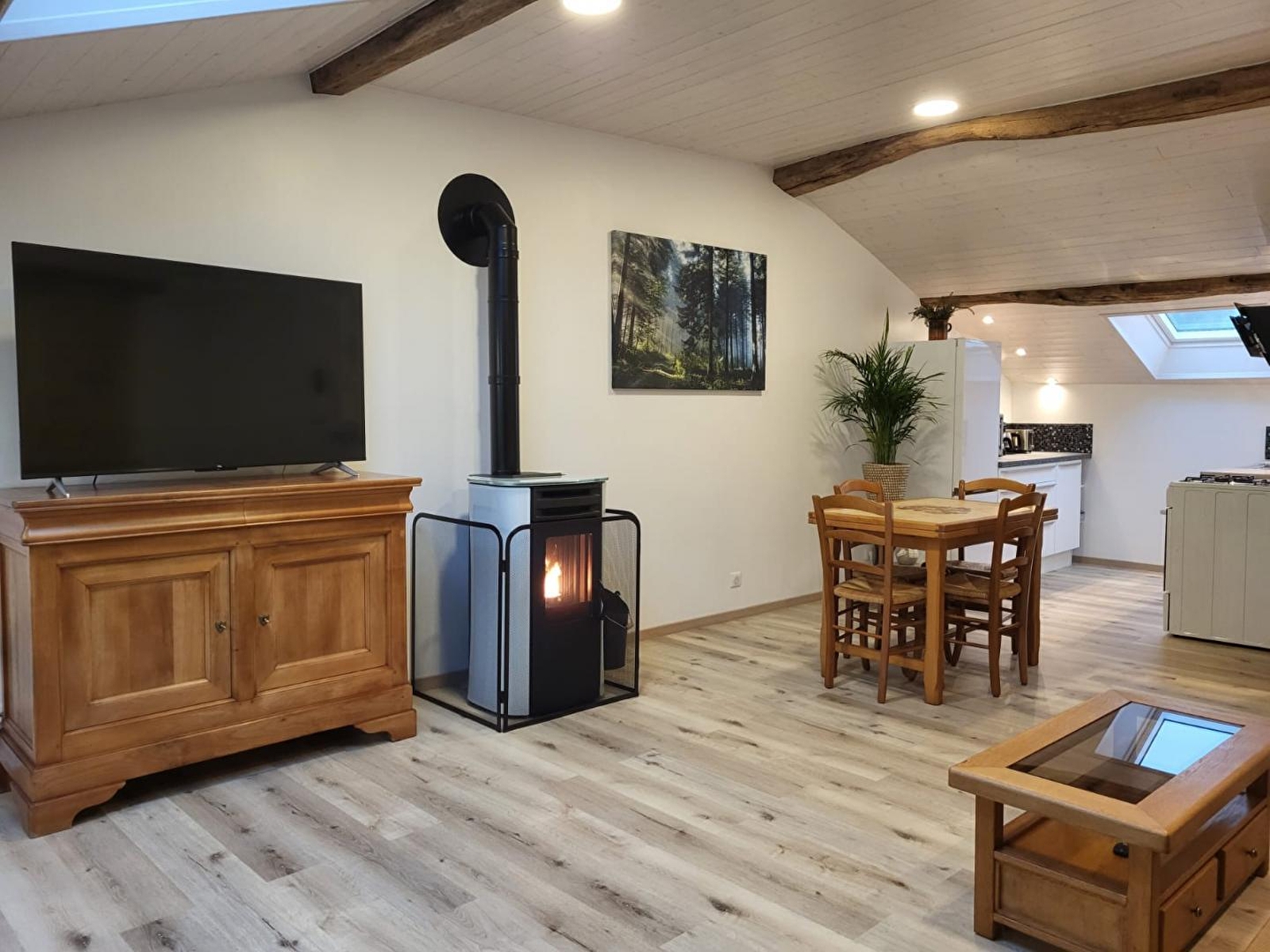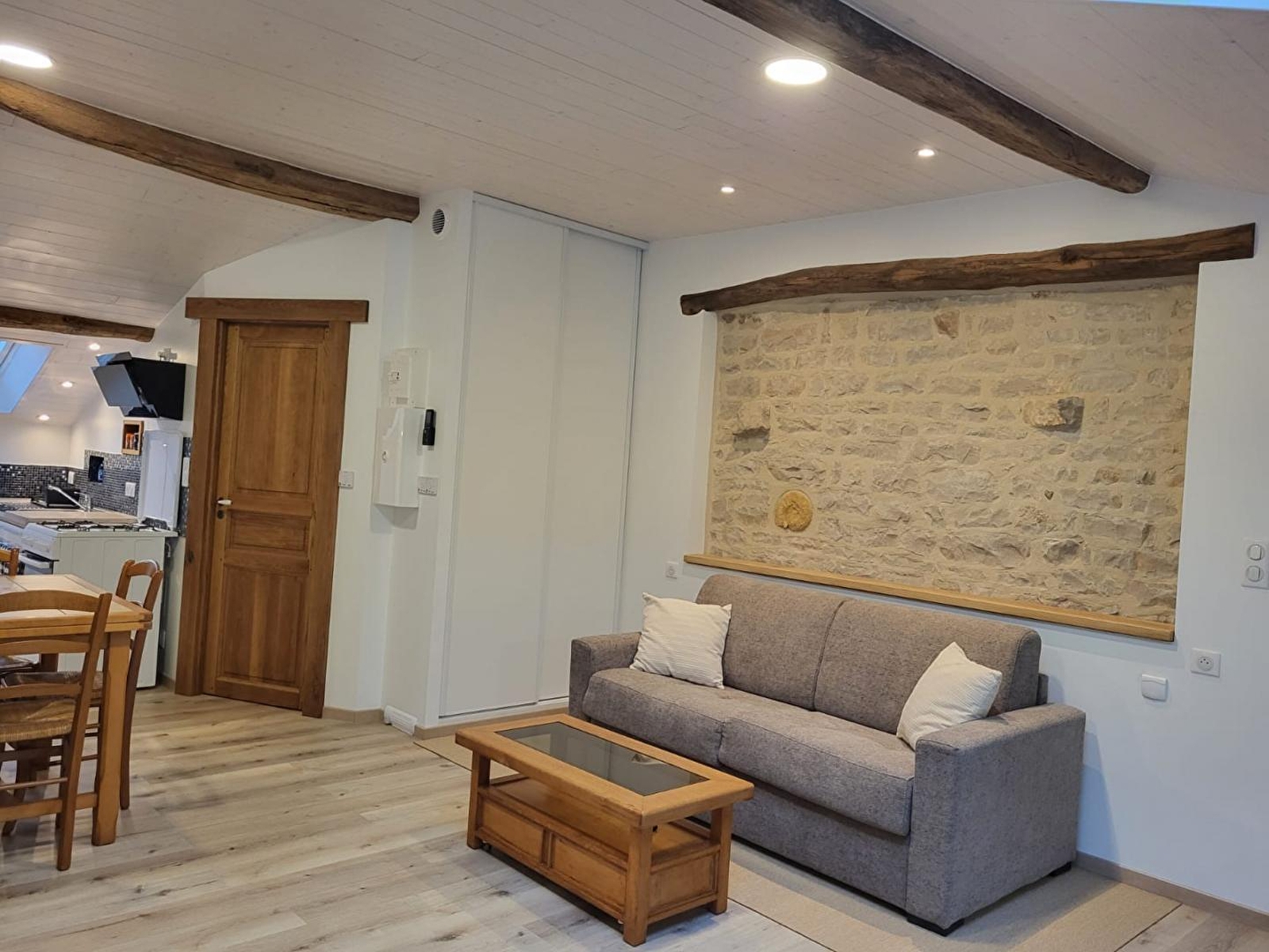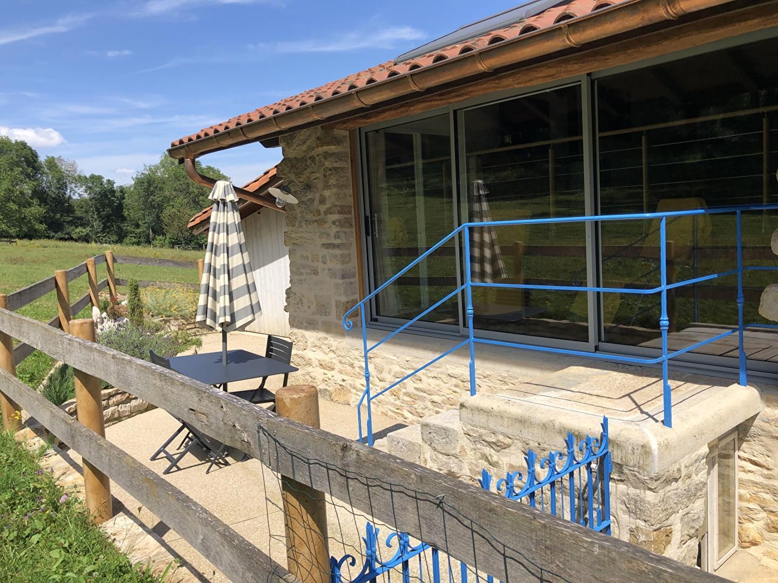 Situé dans un hameau de 50 âmes, ce gîte est situé dans une maison mitoyenne à celle des propriétaires. Néanmoins très indépendant car son accès se fait par un escalier en pierre situé à l'arrière de la maison. Mélange d'ancien et de contemporain, ce tout nouveau gîte très bien équipé, a été conçu par son propriétaire avec un grand soin du détail. Les pierres et poutres apparentes de cette ferme confèrent à cet hébergement beaucoup de charme et une atmosphère chaleureuse. Elle se compose d'une pièce de vie lumineuse avec cuisine toute équipée, salon avec TV, poêle à granulés (sacs fournis gratuitement) et un canapé, d'une chambre avec 1 lit double 140*190 et d'une salle d'eau avec douche et WC. Une loggia aménagée avec 2 transats, propice à la lecture et à la détente, avec vue sur le vaste pré des chevaux vous offre un cadre rêvé pour vous ressourcer en pleine nature. Côté extérieur, vous pourrez profiter d'une terrasse équipée d'un salon de jardin et d'une plancha. Abri pour voiture et/ou motos. Idéalement situé pour les amoureux de randonnées cyclo, pédestre et équestre. Vous pourrez également partir à la découverte des forets, des lacs et cascades et vous rendre à Bourg-en-Bresse en 40 minutes pour visiter son célèbre monastère royal de Brou. De nombreux producteurs locaux et la fromagerie de Nantey se situent non loin, de quoi émoustiller vos papilles!