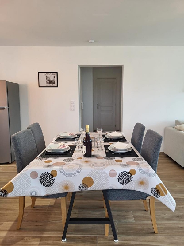 Au cœur d'un village tranquille, à 5 minutes de Dole, ville d'art et d'histoire, au pied du massif jurassien et de ses nombreux sentiers de randonnées mais aussi à proximité de la véloroute, vous séjournerez dans un appartement très lumineux de 90 m2, au premier étage d'une maison individuelle occupée par le propriétaire (avec une entrée indépendante). Le gite non fumeur, se compose d'une petite véranda, d'une grande pièce à vivre avec cuisine équipée, coin salle à manger et espace salon avec canapé et TV, de deux chambres : l'une avec 1 lit double (160*200) et la seconde avec 2 lits pouvant être jumelés (80*200) d'une salle d'eau avec douche et d'un WC séparé. Pour votre plus grand confort, les lits seront faits à votre arrivée et les serviettes de toilettes sont fournies. Vous profiterez, d'une terrasse aménagée avec tonnelle, salon de jardin, barbecue et d'une piscine partagée avec les propriétaires (10mX5m et 2 mètres de profondeur). L'utilisation de la piscine se fera en conformité avec le règlement intérieur mis en place par les propriétaires. Vous serez à moins de 2 Km de tous commerces et de l'accès à l'autoroute. Parking à l'intérieur de la propriété et local deux roues sécurisé mis à votre disposition.