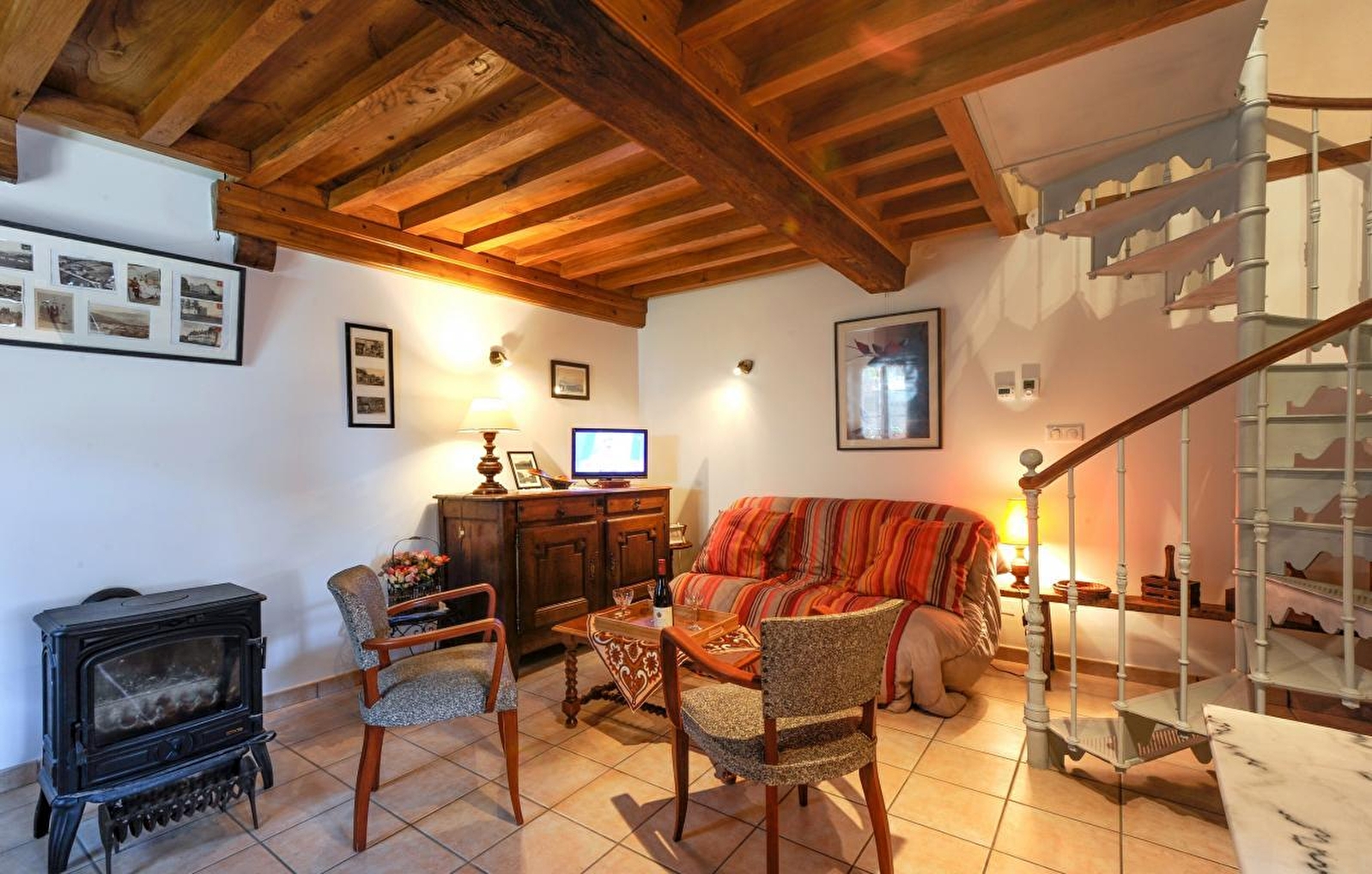 Composition : Maison individuelle sur 2 niveaux. Chauffage électrique (plancher chauffant) + poêle à bois. Rdc : cuisine, séjour-salon, Wc indépendant. 1er étage : 2 chambres (lit 2 p. 140x190cm / lit 1 p. 90x190cm), salle d'eau (douche/Wc). Terrasse close (25m²) + parking privés. Petits commerces 5.5 km. Petit supermarché 10 km.