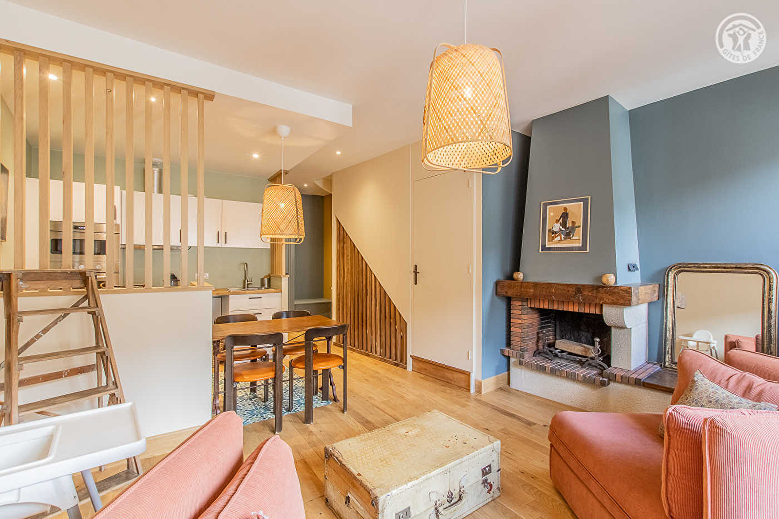 Composition : Maison de bourg mitoyenne. Wifi. Chauffage central gaz + cheminée. Gîte duplex (accès par rdc). 1er étage : séjour-cuisine-salon, salle d'eau (douche/wc). 2ème étage : chambre (lit 2 p. 160x200cm + lit 1 p. 80x200cm). Garage privé (voiture & local vélos). Toutes commodités sur place. 62m² de surface au sol (incluant mansardes sous hauteur de 1.80m).