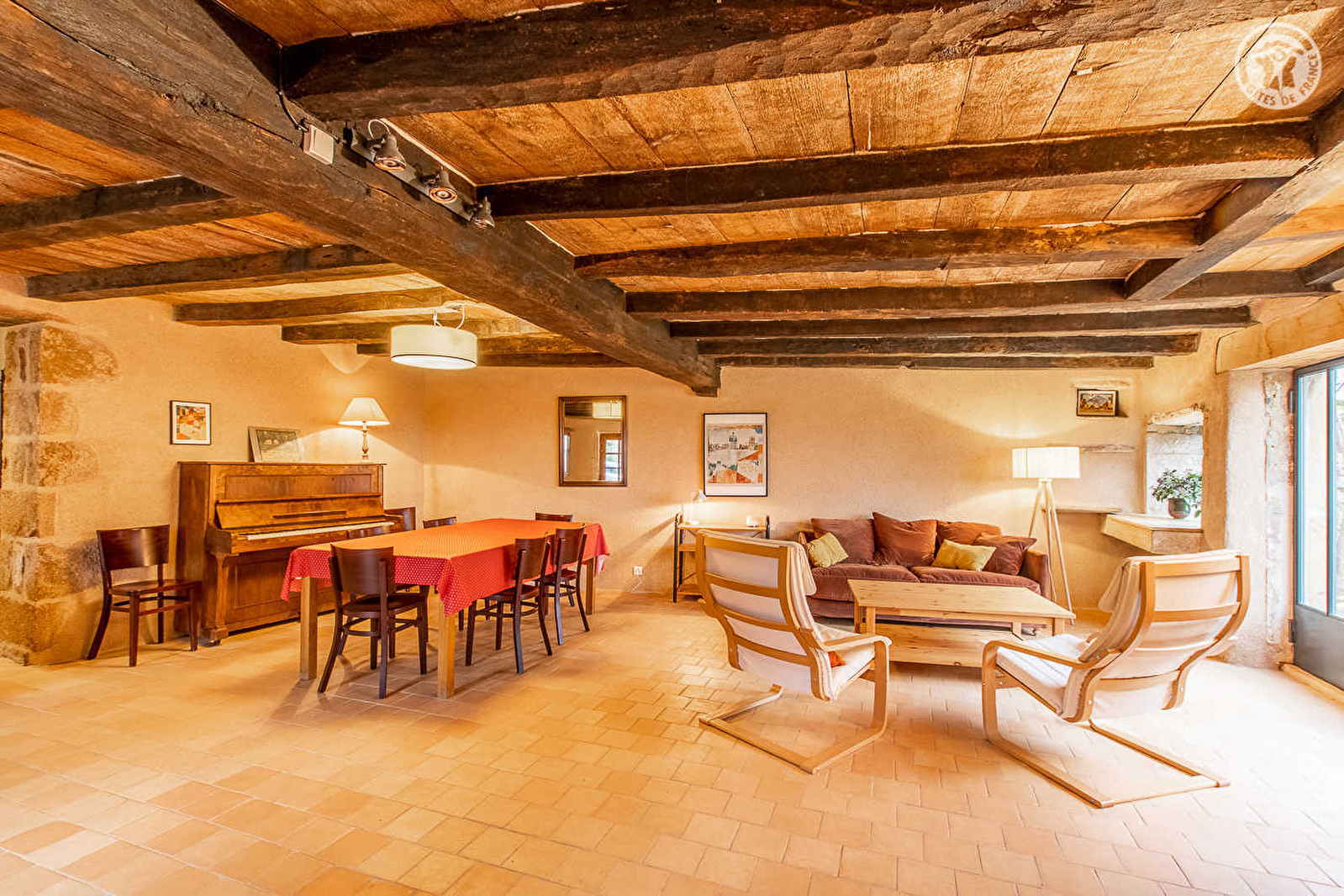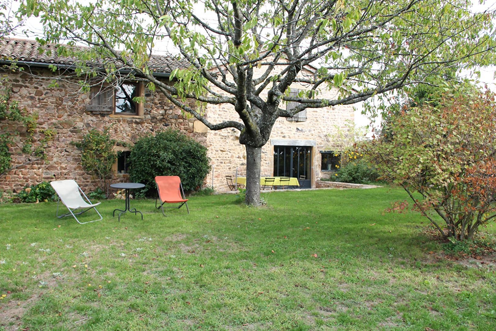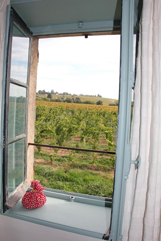 Viticulteurs retraités, Hélène & Denis vous accueillent dans une authentique maison de vigneron de caractère du 18ème siècle, soigneusement restaurée dans les règles de l'art, blottie sur une belle propriété viticole familiale empreinte d'histoire composée de plusieurs bâtiments historiques également parfaitement entretenus & rénovés. Environnement calme et tranquille, au sein d'un ravissant petit hameau résidentiel typique lové à flanc de coteau sud exposé en plein cœur du magnifique vignoble du célèbre AOC Saint-Amour (le plus septentrional des 10 crus du Beaujolais). Au creux d'un cadre & site paysagé viticole d'exception, absolument magique et enchanteur, successions de vastes coteaux de vignes, bucoliques petites rivières & collines boisées. Somptueux panorama & paysages. Spacieux gîte de très bon confort. Agréable grande pièce de vie. Chaleureux cachet campagnard entre traditions & modernité, mixant touches contemporaines & ambiance « bourgeoise » raffinée, à la douce atmosphère dépaysante d'une authentique demeure chargée d'histoire (restauration patrimoniale soignée : conservation des poutres & plafonds, linteaux de portes et fenêtres en pierres, plancher d'origine…). Beaucoup de charme. Cocooning, douillet & très cosy. Large terrasse exposée & ombragée ouverte sur un charmant jardin intimiste clos de 500m² (niché derrière d'historique mur d'enceinte en pierres), soigneusement végétalisé, fleuri et arboré (dont 1 cerisier & 1 pommier). Vous disposez également d'une petite cour, véritable terrain de pétanque naturel.