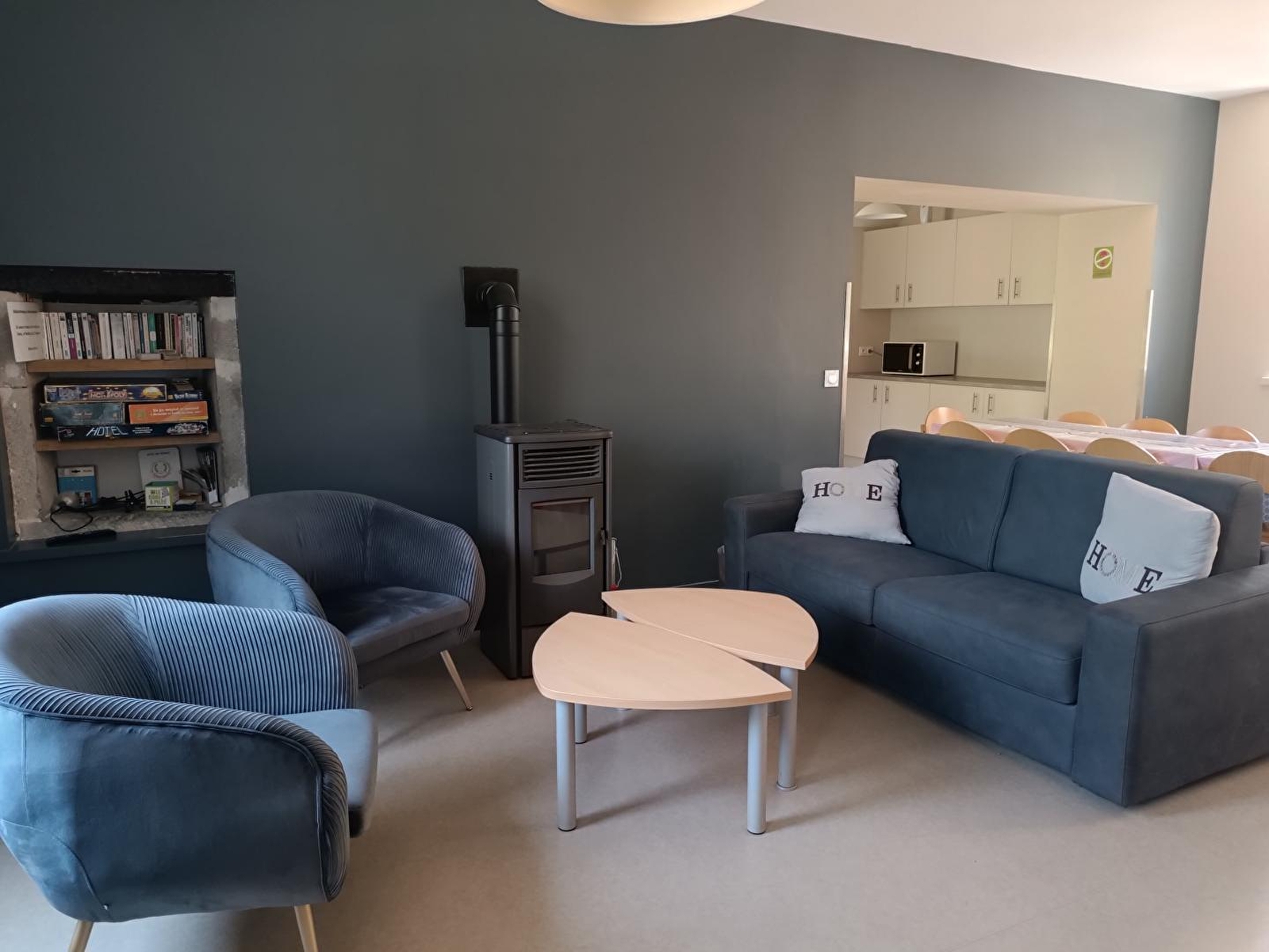 Composition : Maison individuelle sur 2 niveaux. Wifi. Chauffage électrique + poêle à bois. Rdc : séjour-cuisine-salon, 2 chambres dont une PMR (lit 2 p. 140x190cm / 3 lits 1 p. 90x190cm dont 2 superposés), salle d'eau PMR (douche/Wc), Wc indépendant. 1er étage : 2 chambres (lit 2 p. 140x190cm / 6 lits 1 p. 90x190cm en 2 x 2 superposés + 2 gigognes) dont une avec sde privative (douche), sde (douche), Wc indépendant. Baby-foot. Terrasse + balcon-terrasse + jardin (terrain pétanque & ping-pong) + local vélos + parking privatifs. Commerces dont supermarché 2.5 km. Toutes commodités 14 km. Prêt de vélos.