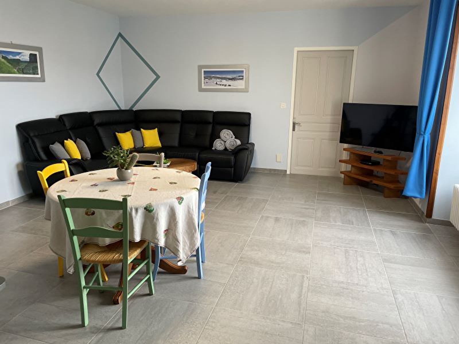 Au coeur de la région des Lacs et des Cascades, logement indépendant aménagé dans la maison mitoyenne des propriétaires, où se trouve également un autre gîte. Entrée au rez-de-chaussée avec rangements. Au premier étage : vaste et lumineux salon, grande télévision écran plat, canapé. Cuisine indépendante entièrement équipée. Une première chambre avec un lit de 140. Une seconde chambre avec un lit de 160x200 et deux lits superposés de 90x200. Salle d'eau avec grande douche, lave-linge et sèche-linge. Wc indépendants. Terrasse à proximité du gîte, équipée pour la belle saison d'un salon de jardin, parasol et barbecue. Les draps sont fournis gratuitement mais pas les serviettes de toilettes.