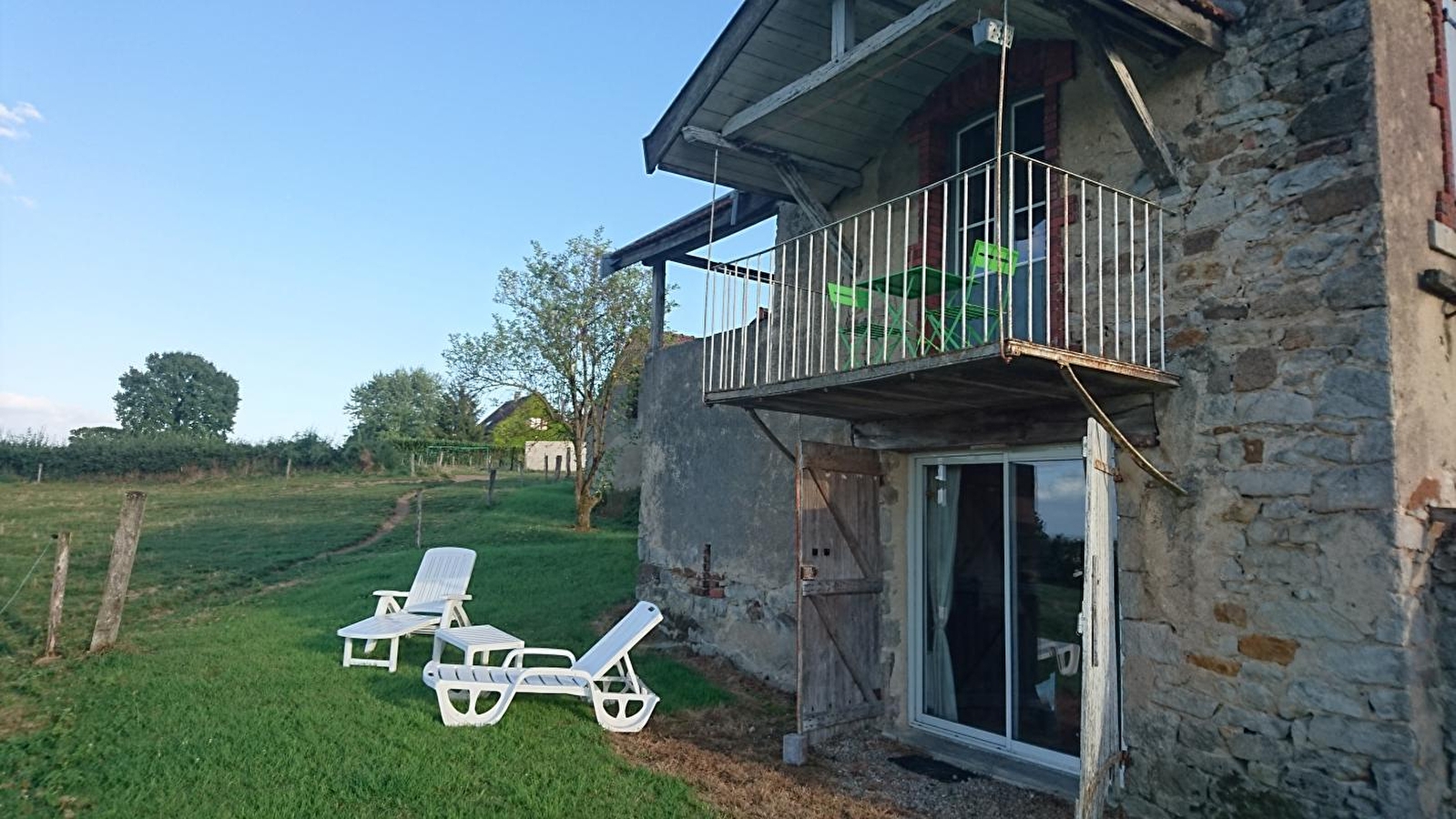 Photographe professionnel, Jean-François vous accueille au sein d'une charmante atypique "maisonnette" de caractère datant de 1820 pétrie d'histoire intégralement restaurée (authentique "métairie" jadis liée au petit domaine agricole qui occupait les lieux), nichée "en balcon" & "belvédère panoramique" sur une colline dominant un vaste vallon de douces prairies boisées, offrant un superbe panorama & une très belle vue dégagée sur la campagne environnante & le massif du Morvan en toile de fond. Au sein d'un paisible hameau résidentiel sis en pleine campagne péri-urbaine, à deux pas du centre de Montceaux & ses commodités, ancien bassin minier riche d'un rare patrimoine industriel qu'elle a su valoriser, reconverti vers les activités ludiques sportives, de pleine nature & culturelles (proposant 280 ha de parcs & espaces verts, véritables havres de repos), comme de la douce campagne vallonnée alentour, mixant belles forêts & bucolique bocage parsemé de rivières & grands lacs, dont le proche étang du Plessis, littéral "poumon vert" accolé à une vaste forêt. Gîte de bon confort. Chaleureux cachet campagnard, insolite & totalement dépaysant sublimé par l'âme du bâti originel (murs & linteaux en pierres, portes d'entrée avec ses ferronneries, porte de placard murale, insolite salle d'eau voutées en pierres & briques… d'origine). Large balcon-terrasse panoramique abritée, complétée par un balcon abrité. Agréable jardinet blotti en lisière de pâtures accueillant les célèbres vaches charolaises en saison.