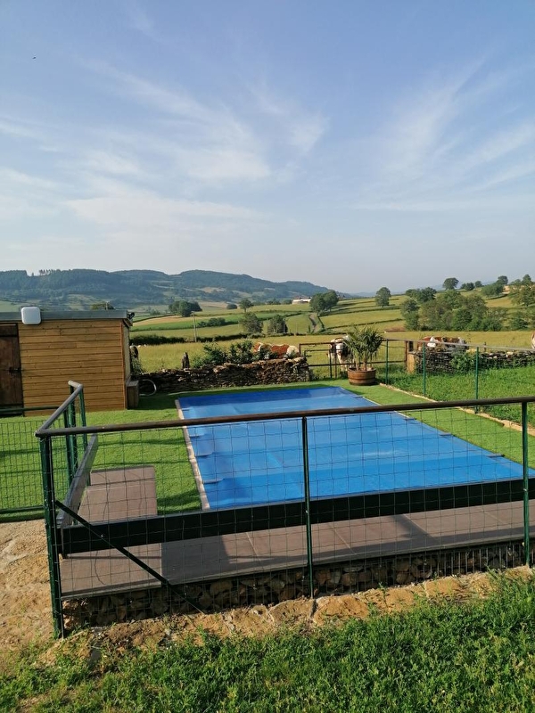 Authentique ferme bourguignonne typique du 19ème siècle, intégralement restaurée & chargée d'histoire (ancien domaine viticole), nichée au cœur d'un petit hameau rural, en lisière de bois, prairies & pâtures (avec les célèbres douces charolaises comme voisines privilégiées). Agréable cadre champêtre préservé, lové à flanc de coteau sud exposé sous les crêtes boisées de la vaste forêt domaniale des Trois Monts, magnifique espace sauvage naturel protégé en « Zone Natura 2000 » parsemé de sentiers pédestres balisés. A deux pas du cœur du paisible village de Mazille, « Site Clunisien » riche d'un patrimoine notable (église romane classée du XIe, prieuré du XIe classé MH, menhir celte, Doyenné des Moines datant du XIIIe siècle…), également connu pour son couvent de l'ordre des carmels (« le Carmel de la Paix », classé aux MH), d'architecture moderniste ultra atypique (œuvre d'un élève de Le Corbusier), Originale propriété de 1 ha en commun comprenant une piscine, un terrain de pétanque, un poulailler, plusieurs terrasses (une couverte et une sous une pergola végétalisée) & un jardin engazonné doté d'un petit verger (pommiers, cerisiers pruniers, kiwis… / cueillette possible). Large balcon-terrasse privatif côté gîte offrant une belle vue sur la forêt. En bonus, vous bénéficiez d'une vaste salle de réception de 90m² située au rdc de la maison (louable uniquement avec les 2 gîtes).