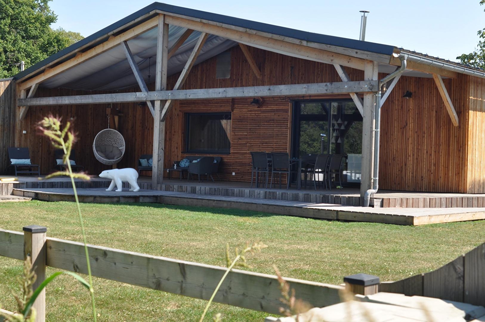 Au cœur des étangs de la Bresse jurassienne, venez vous ressourcer dans ce petit nid douillet niché dans un cadre idéal pour se reposer et profiter pleinement de la nature environnante et du calme de ce charmant petit village. De plain-pied, cette maison bois contemporaine indépendante saura vous ravir par sa modernité, son confort, et la qualité de ses prestations. La grande et lumineuse pièce à vivre est composée d'une magnifique cuisine entièrement équipée et d'un salon avec télévision écran plat et insert à granulés pour rendre encore plus chaleureuses vos soirées hivernales. Une première salle d'eau avec douche et wc est attenante à deux chambres : l'une avec un lit de 160x200 et l'autre avec deux lits de 90x200. Vous trouverez également une 3ème chambre avec un lit de 160x200cm ayant sa propre salle d'eau (douche et wc). Les trois chambres ont une télévision privative. Pour votre plus grand confort, les lits seront faits à votre arrivée, les serviettes de toilettes sont fournies et le ménage est inclus. Côté extérieur, la grande terrasse abritée équipée de mobilier de jardin, idéale en toute saison, est une véritable invitation à la détente. Elle dessert une jolie piscine creusée (6m * 4m * 1.3 m de profondeur) accessible à la belle saison, lorsque les températures le permettent, ainsi qu'un vaste terrain attenant. Un bain nordique est à votre disposition hors période estivale. Pour les amateurs de randonnées, la voie verte se trouve à deux pas du gîte ! ( Des vélos sont à votre disposition). N'attendez plus pour venir découvrir ce petit paradis !