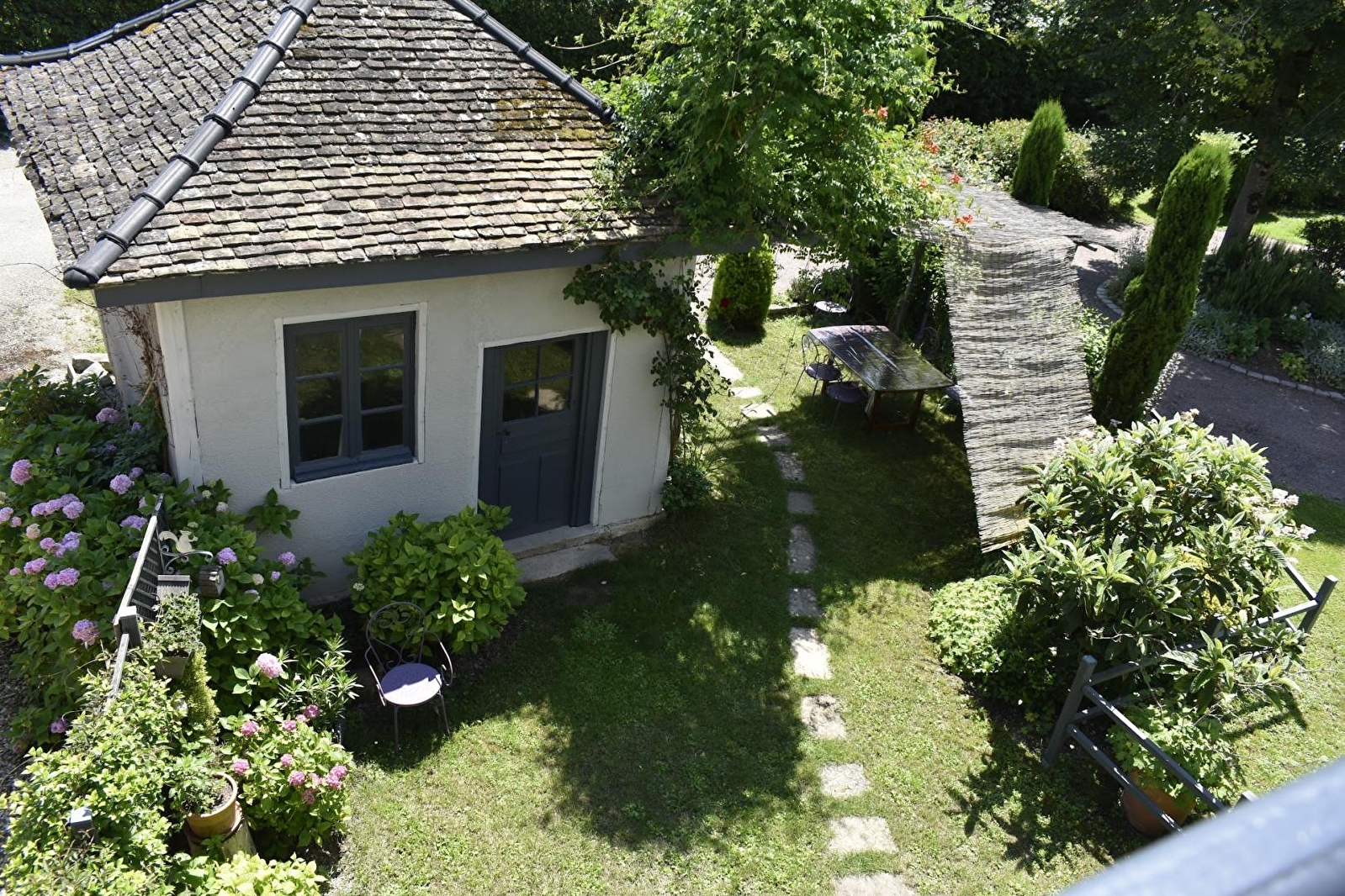 Belle demeure de caractère de 1898 chargée d'histoire, restaurée avec goût sur une vaste propriété soigneusement aménagée et fleurie de 3500m² sise à 6 km de Chalon-sur-Saône et 4 km de la voie verte & de l'autoroute. Hameau résidentiel bordant le centre du bourg, entre ville et campagne, niché dans un charmant cadre champêtre préservé en lisière de champs et forêts. En toute proximité de la route des vins et des célèbres vignobles de renommées mondiales des côtes Chalonnaise et côtes de Beaune. Situation ultra privilégiée pour rayonner à 26 km de Tournus, 37 km de Beaune et 44 km de Cluny, au carrefour des territoires du Chalonnais, de la Bresse Bourguignonne et du pays Beaunois. Nombreuses activités, culturelles, gastronomiques, naturelles et sportives en toute proximité. Gîte de très bon confort. Cachet bourgeois raffiné. Enormément de charme et de caractère. Elégant mariage d'une rénovation patrimoniale historique soignée (conservation des parquets, boiseries… d'origine) dans un ravissant esprit contemporain. Spacieux et très cosy. Equipement complet de qualité. Balcon exposé. Terrasse ombragée sous tonnelle. Agréable jardin privatif et fleuri avec cabanon réservé (local à vélos). Accès supplémentaire à un vaste terrain aménagé avec verger (commun avec propriétaires) disposant d'une table de ping-pong et d'une cabane pour enfants.