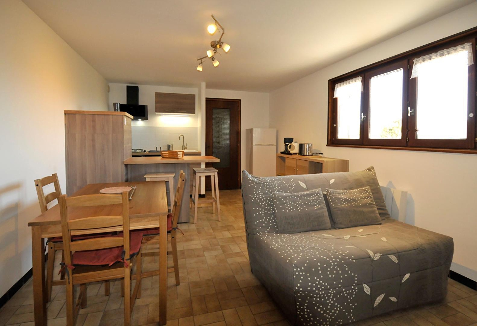 Cet appartement situé au rez-de-chaussée d’un chalet vous offre une vue dégagée sur la nature environnante, pour un séjour calme et agréable. Idéal pour un couple ou une petite famille, vous pourrez profiter de la tranquillité de l'endroit tout en ayant accès à des équipements pratiques pour un séjour confortable. Vous pourrez disposer d'un séjour coin-cuisine, avec canapé convertible BZ, une chambre avec 1 lit 2 places, et un lit bébé, une salle d'eau, un terrain attenant non clos,une cour, et un salon de jardin et barbecue. Foncine-le-Haut est idéalement situé pour découvrir les paysages du Jura, avec de nombreuses possibilités de randonnées et activités de plein air.