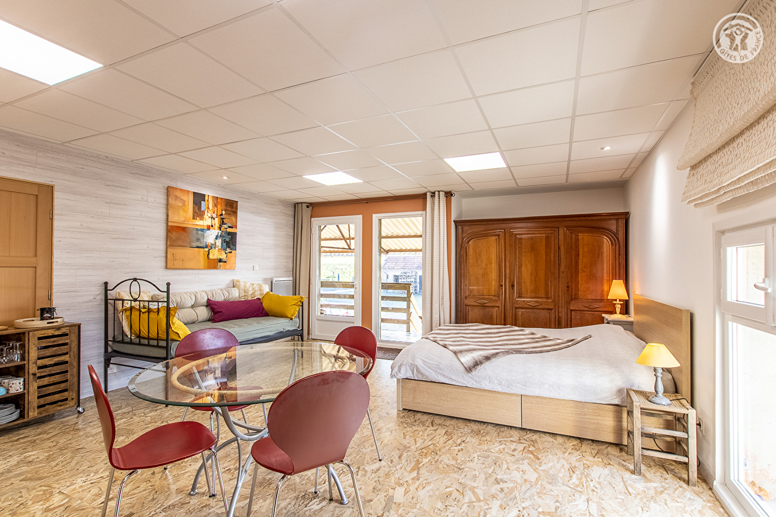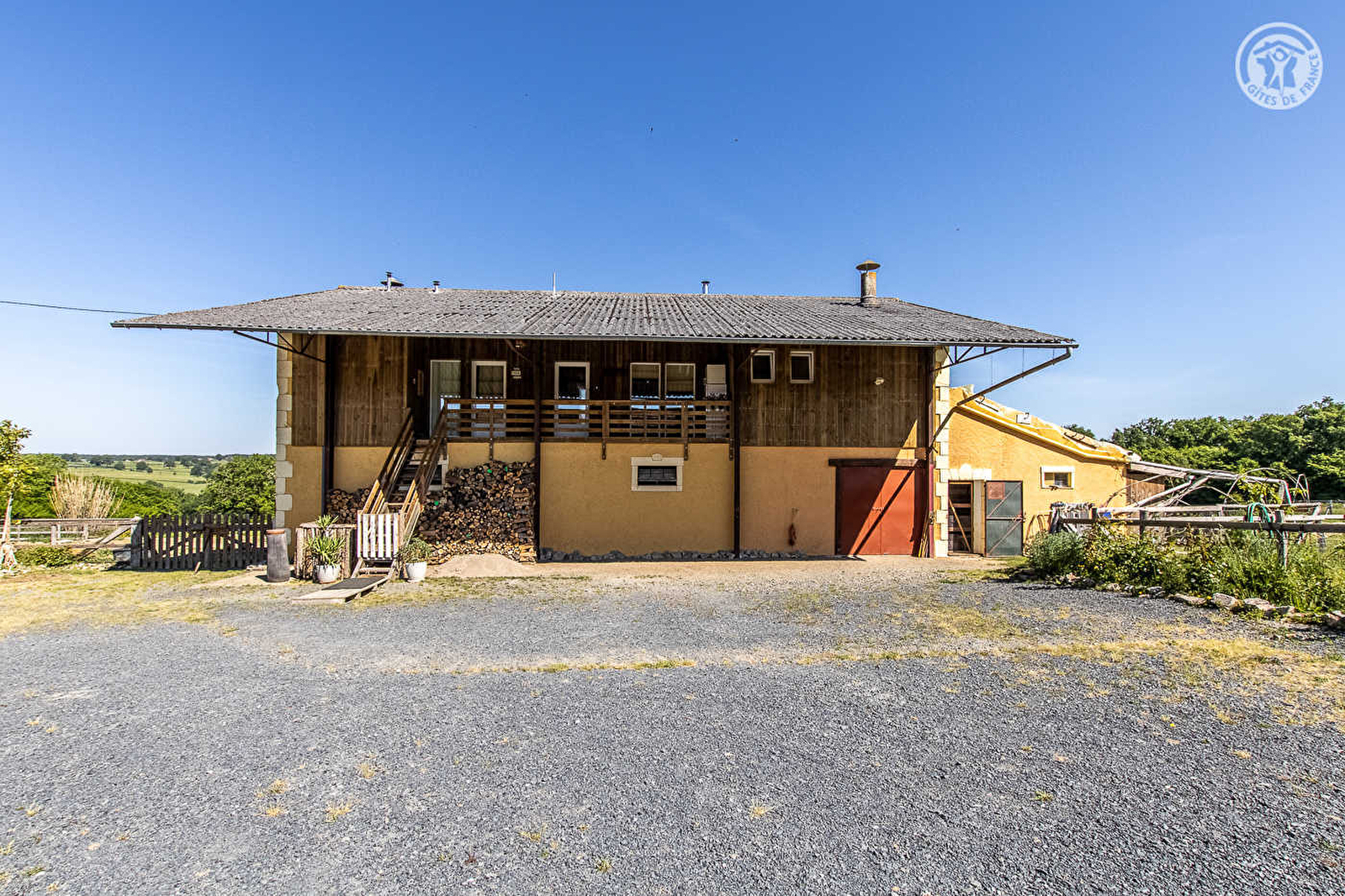 Composition : Accès par 500m de route forestière carrossable. Maison individuelle (étable/écurie au rdc) comprenant 2 gîtes, jouxtant habitation propriétaires (totale indépendance). Wifi (fibre). Chauffage électrique + poêle à bois. Studio au 1er étage (2 lits 1 p. 80x200cm jumelables en lit 2 p. 160x200cm + lit 1 p. 90x190cm), salle d'eau (douche / Wc indépendant). Terrasse privative . Balcon abrité + terrain + piscine chauffée en commun (4x8m). Abri voiture + parking privés. Local vélos. Commerces 7.5 km.