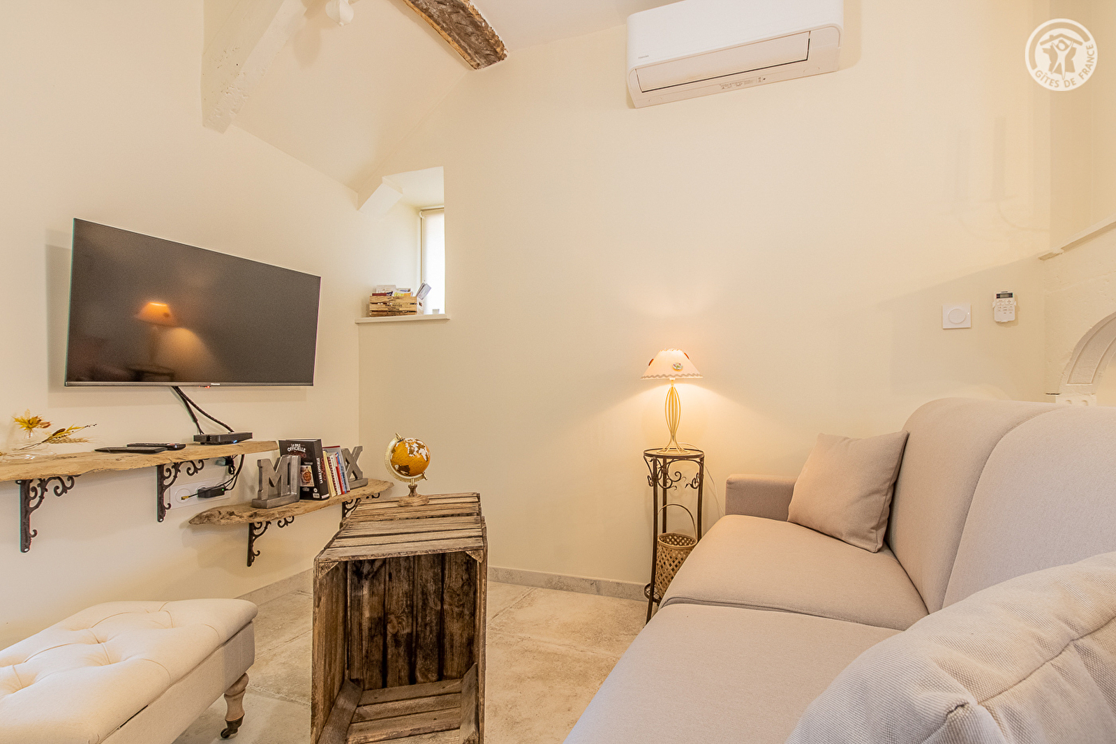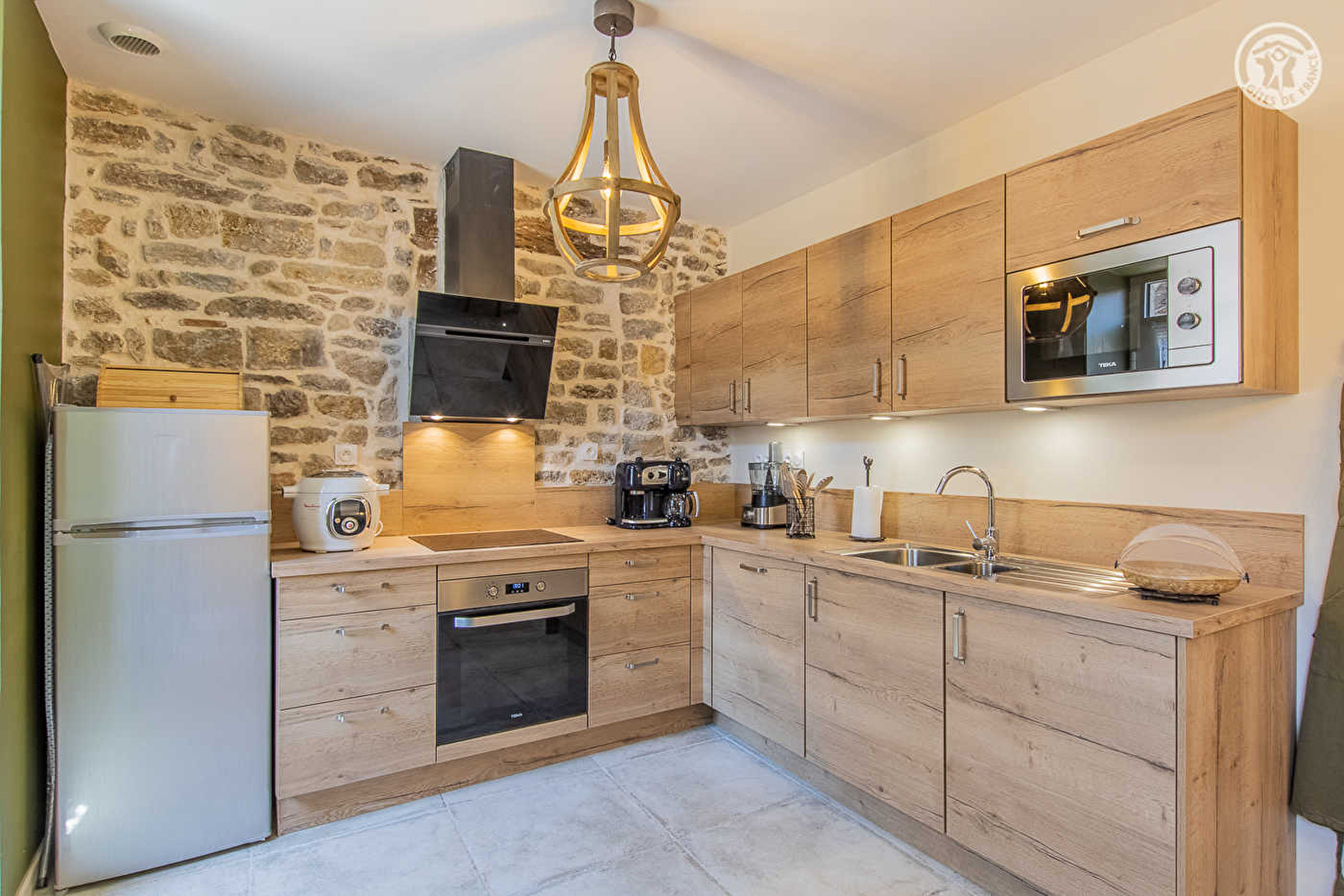 Composition : Maison mitoyenne à l'habitation des propriétaires (gîte duplex au 1er étage / totale indépendance). Wifi. Chauffage PAC. Climatisation. 1er étage : séjour-cuisine-salon, chambre (1 lit 2 p. 140x190cm) avec salle d'eau privative (douche/Wc), Wc indépendant. 2ème étage : chambre (1 lit 2 p. 160x200cm) avec salle d'eau privative (douche/Wc indépendant). Terrasse + local vélos + parking privés. Terrain (1500m²) en commun avec propriétaires. Commodités à 5 km. Gare 10 km.