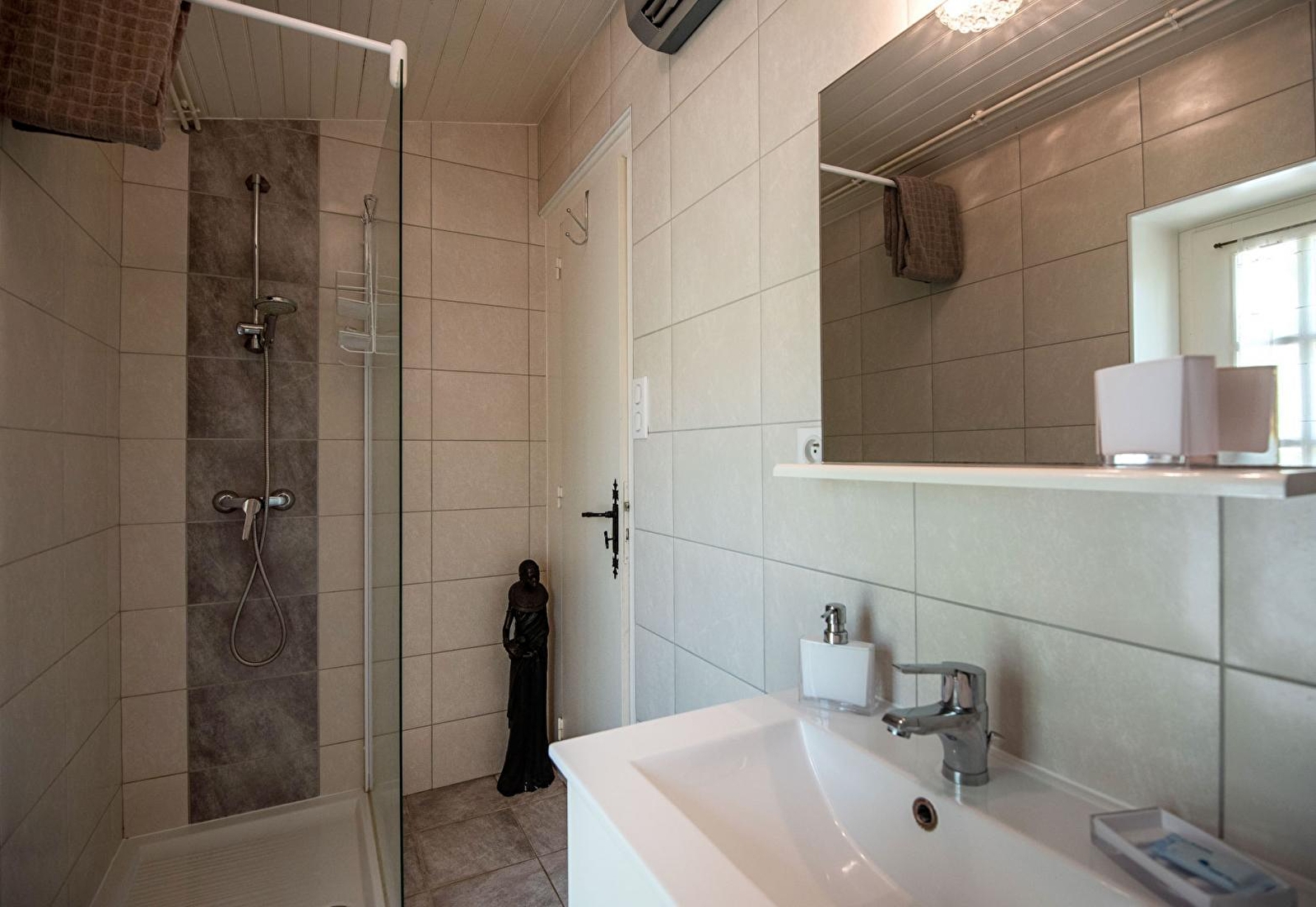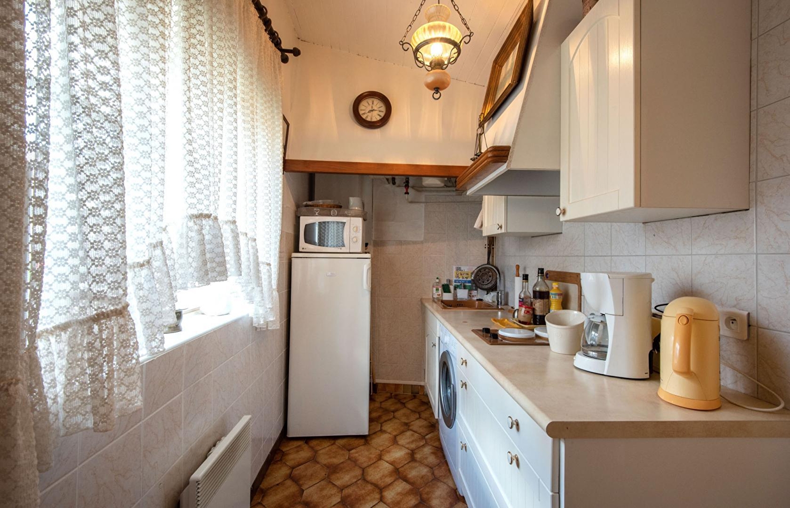 Composition : maison individuelle voisinant maison propriétaires (abritant un autre gîte) sur une propriété dotée de 4 chambres d'hôtes (dont 2 roulottes côté jardin). Wifi. Chauffage électrique + cheminée. Gîte de plain-pied en rdc : cuisine, séjour-salon avec "coin nuit" en alcôve (lit 2 p. 140x190cm), salle d'eau (douche/Wc). Terrasse (gravier) + parking privés. Jardin clos (1500m²) avec piscine (3.5 x 7m) en commun. Local vélos. Commodités à 300m. Supermarché 1.5 km.