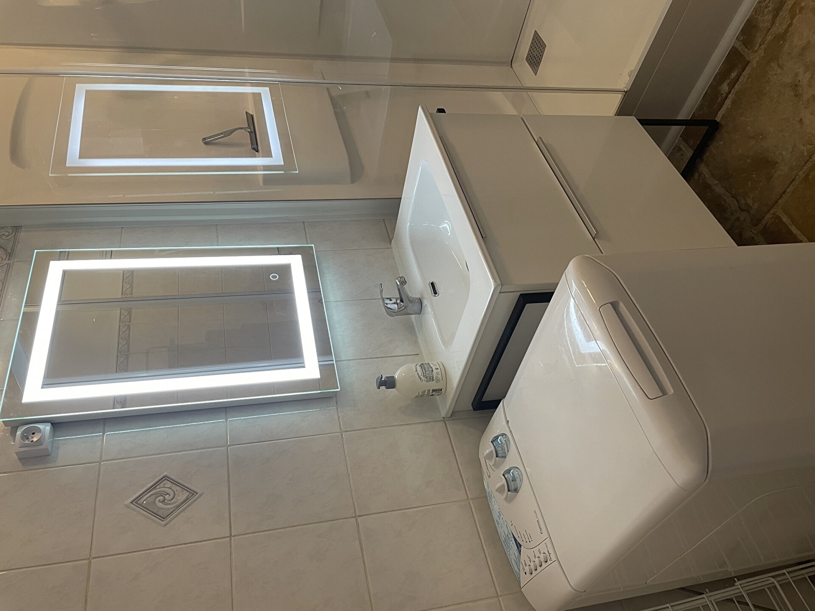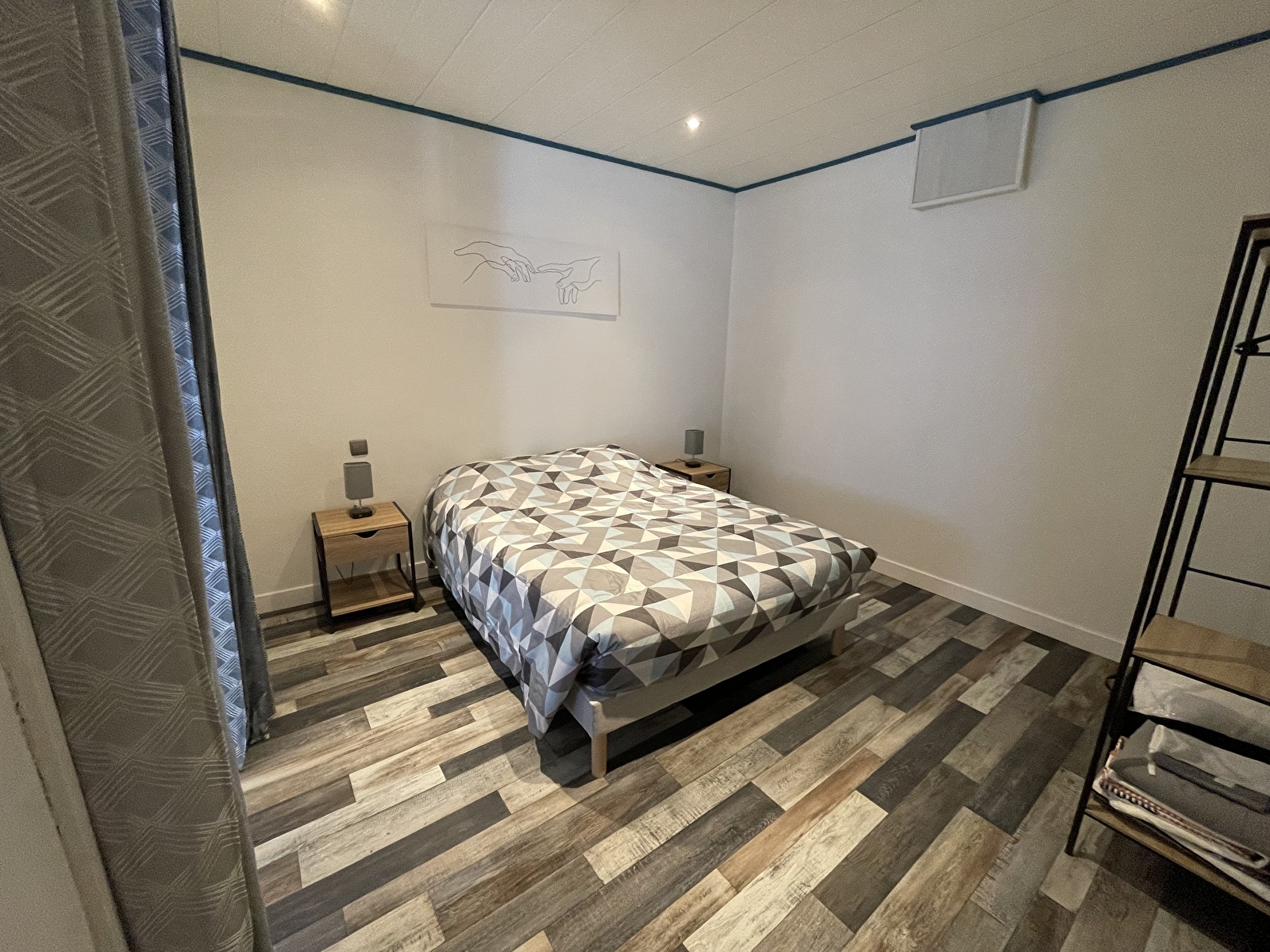 La cuisine s’ouvre sur un salon convivial, doté d’un canapé convertible où vous pourrez vous détendre ou regarder la télévision.