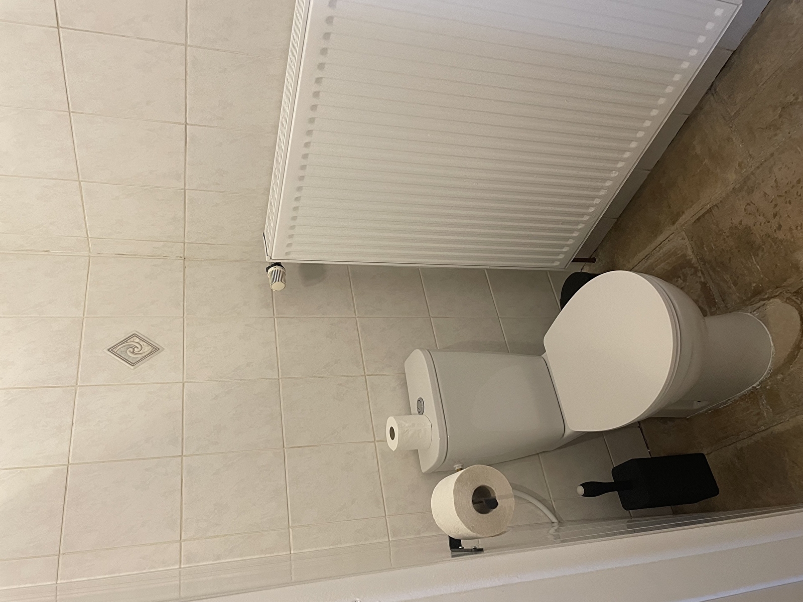 Enfin, une salle de bain fonctionnelle comprend un coin toilette astucieusement dissimulé.
