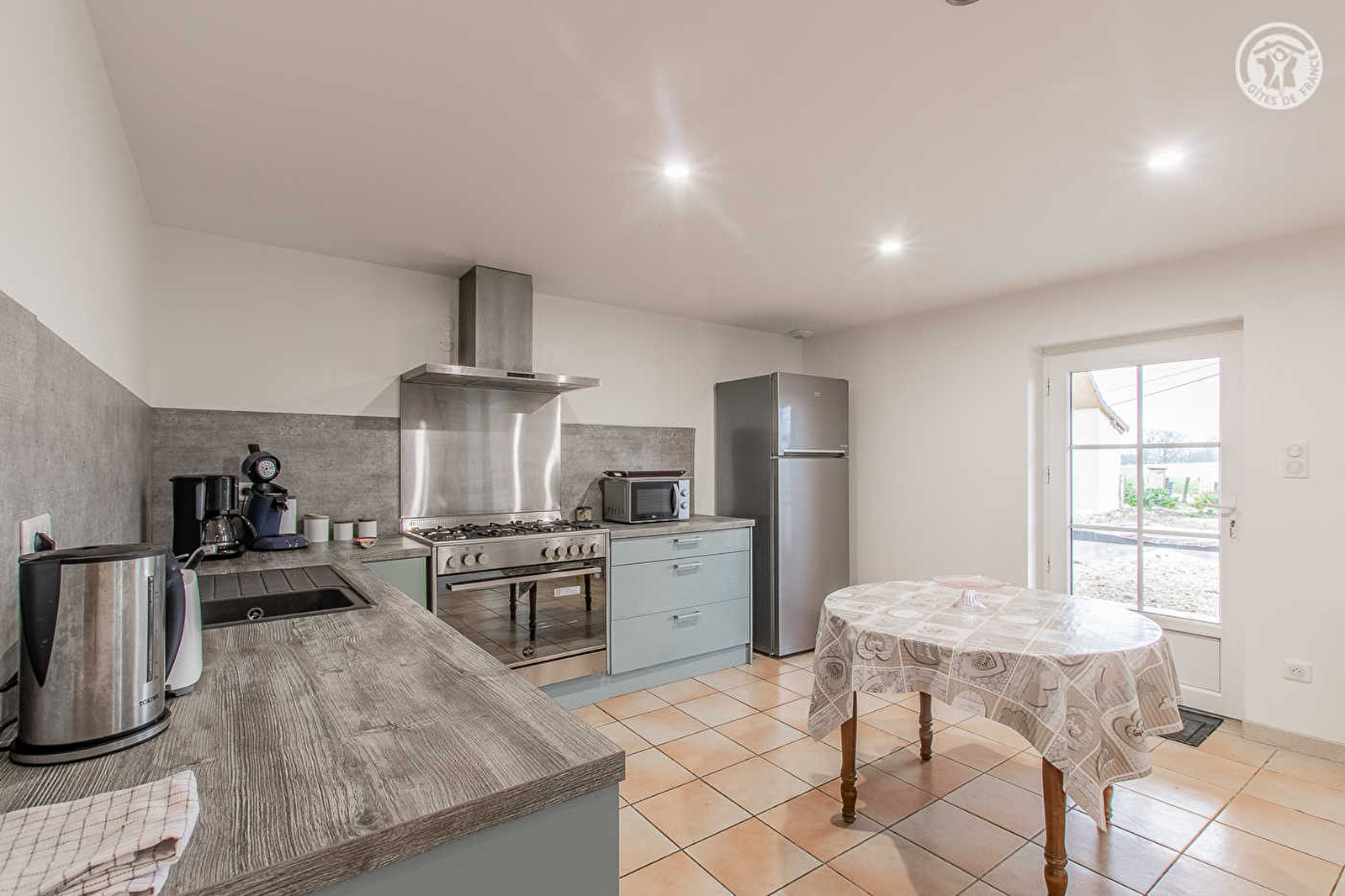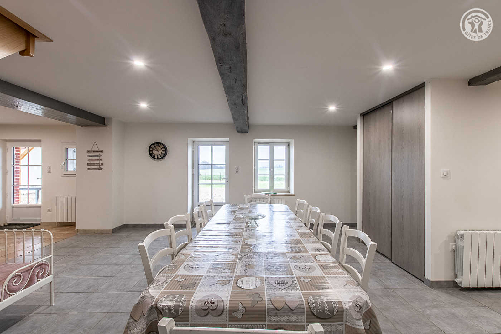 Tous deux agriculteurs producteurs céréaliers (exploitation sise à deux pas du gîte / très intéressante & ludique visite des lieux possible en leur compagnie), Florence & Laurent vous ouvrent les portes d'une authentique demeure de pays du 19ème siècle intégralement restaurée, nichée au calme en pleine campagne bressane. Paisible petit hameau rural résidentiel blotti au creux d'un agréable cadre champêtre vallonné, bucolique & verdoyant, en lisière de champs & prairies, à deux pas de plusieurs forêts (dont le Bois des Claies tout proche). A 2 km du cœur du village de Flacey-en-Bresse doté d'un city stade et d'une mini aire de jeux pour les enfants. Gîte de bon confort. Très spacieux. Rare vaste pièce de vie de 60m². Cachet campagnard contemporain sobre et reposant. Ambiance douce & zen. Large terrasse abritée ouverte sur une cour close comprenant un jardinet. Belle vue dégagée sur la campagne environnante avec les monts du Jura trônant en toile de fond.