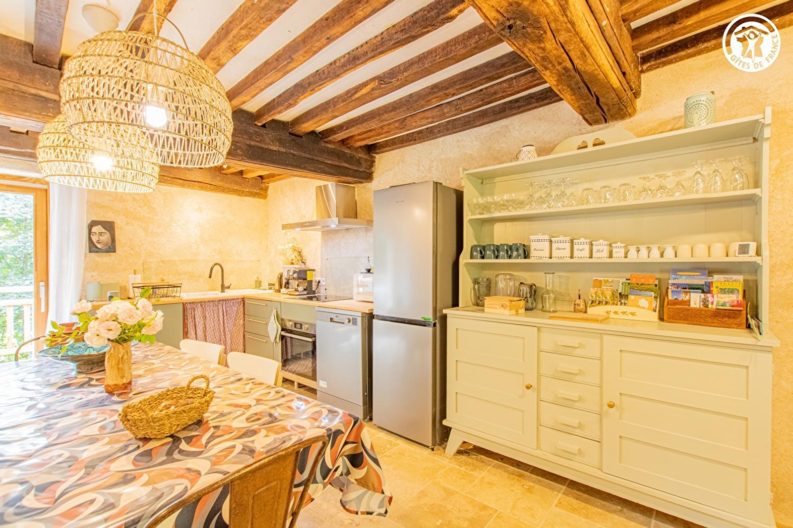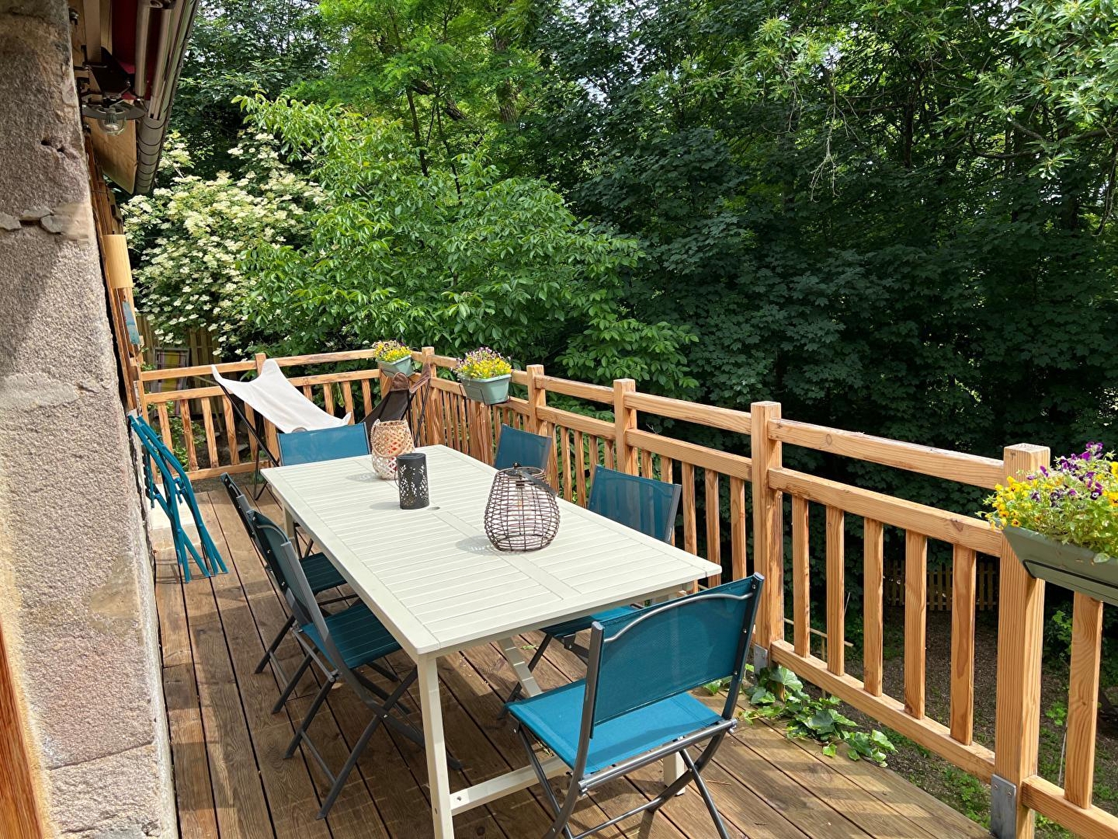 Composition : Maison individuelle voisinant maison propriétaires (totale indépendance). Accès propriété par 30m de chemin empierré carrossable. Wifi (fibre). Chauffage électrique + poêle bois. 1er étage (accès plain-pied par petit escalier descendant depuis parking) : séjour-cuisine-salon, 1 chambre (lit 2 p. 160x200cm), salle d'eau (douche/Wc), Wc indépendant, espace buanderie. 2ème étage : mezzanine-salle de jeux TV (conv. 2 p. 140x190cm en appoint), 1 chambre (lit 2 p. 140x200cm + 3 lits 1 p. 90x200cm). Balcon-terrasse + terrasse gravier + jardin (contrebas, accès par chemin descendant) + local vélos + parking privés. Mini supermarché 3.5 km. Toutes commodités 14 km.