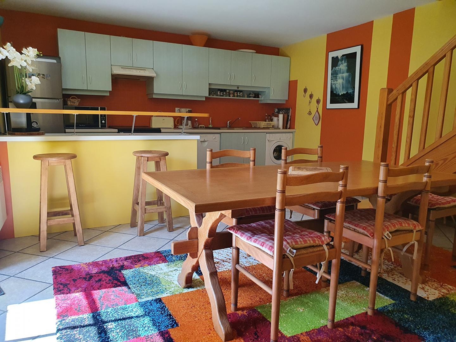 Maison mitoyenne située à proximité des lacs et cascades. Au RDC: cuisine-séjour, salon, canapé convertible, poêle à bois, tv écran plat, lecteur DVD, poste HiFi. A l'étage: ch1: 1 lit 2 pl, 1 lit 1 pl, Mezzanine, petit coin chambre d'enfant avec 2 lits 1 pl superposés, lit bébé à disposition, salle d'eau, WC indépendant, terrain attenant clos, barbecue, salon de jardin, cour. Chauffage électrique et bois. (le bois pour le poêle est facultatif et en supplément). Jeux d'enfants. Location de draps et de serviette de toilette (1.50€ pièce), forfait ménage. Equipé WIFI.