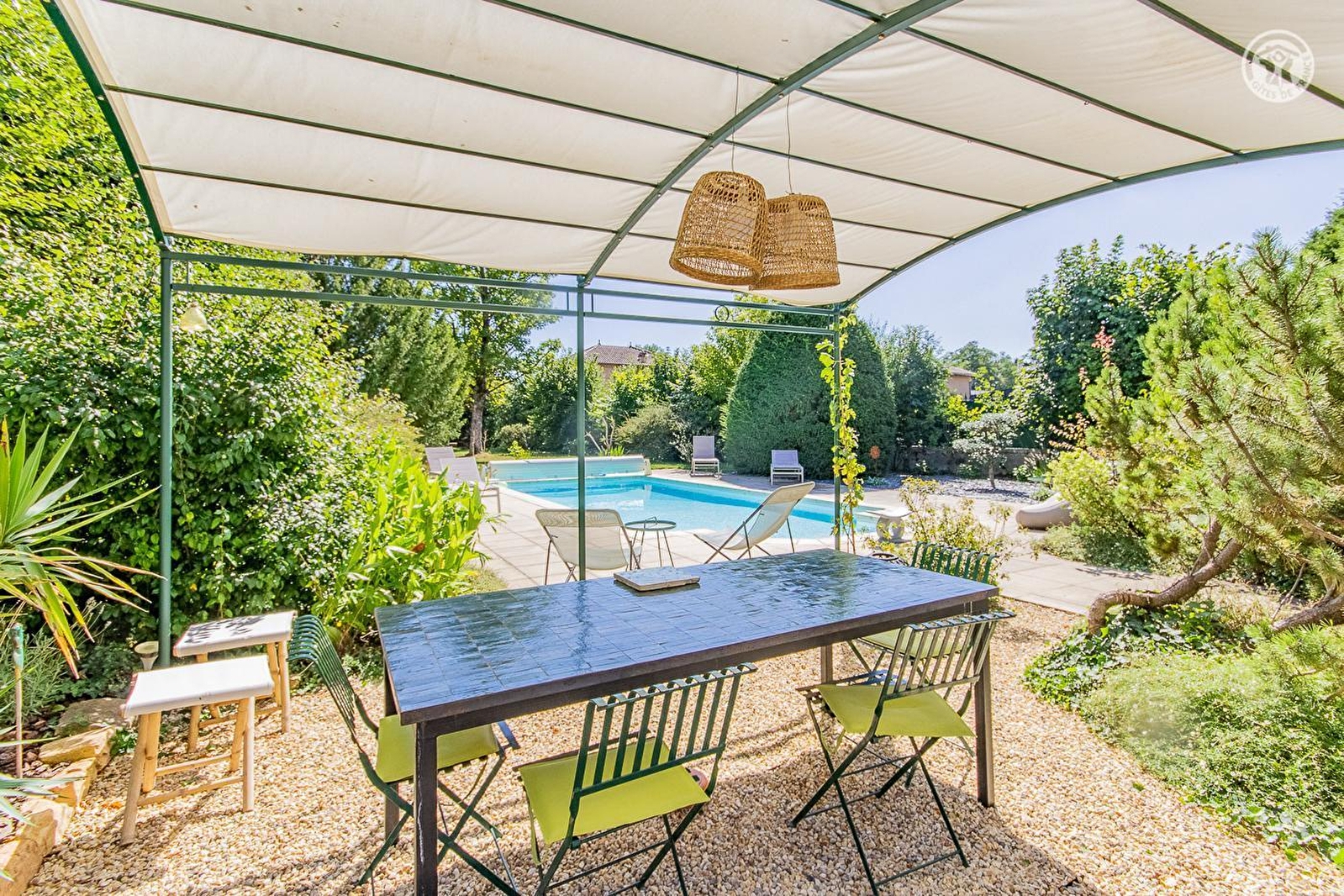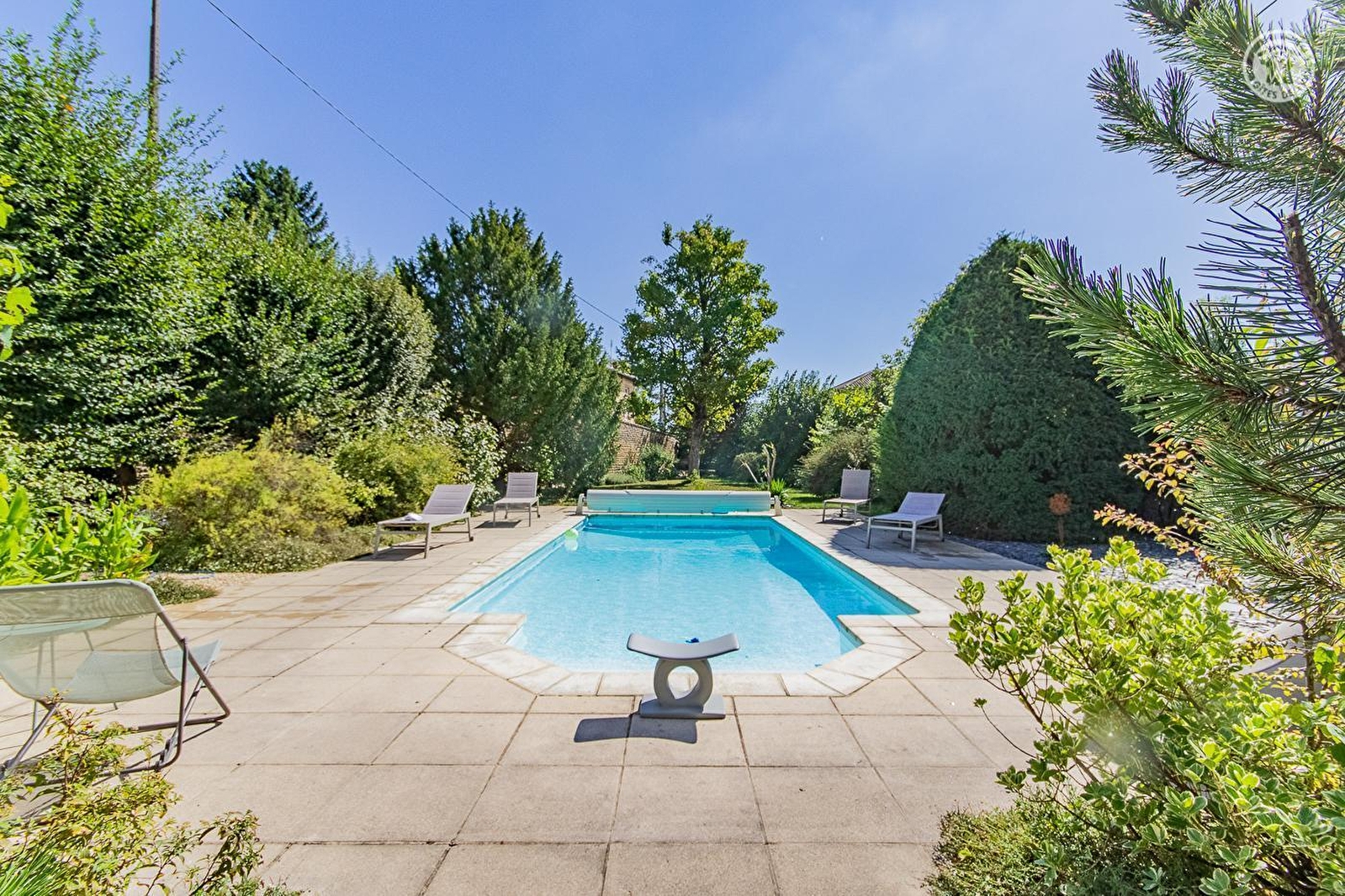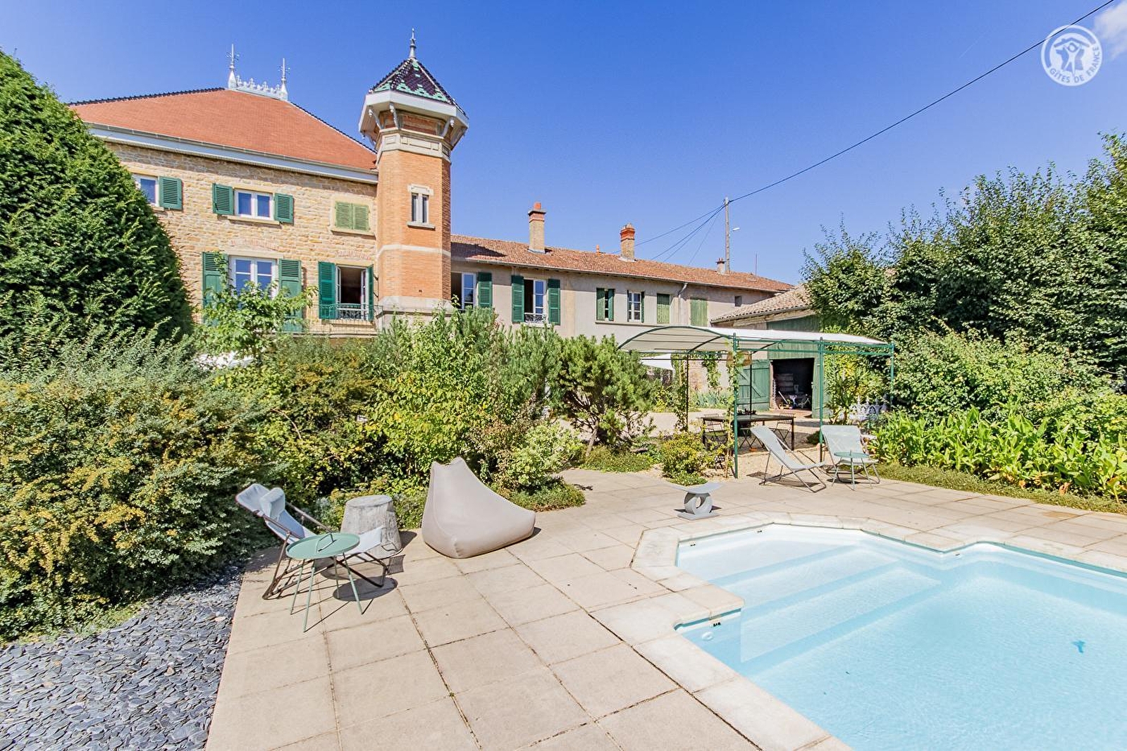 Véronique & Christian vous ouvrent les portes d'une élégante atypique "demeure de maître" de caractère datant de 1840 intégralement restaurée avec soins, lovée sur un ancien domaine viticole (dont subsistent les caves d'origine & l'authentique pressoir de 1899). Hameau résidentiel (abritant une manufacture viticole familiale sans nuisance particulière) blotti au creux d'un vallon, au cœur des vignobles de l'ultra réputé cru "Saint-Véran", à 1 km du pittoresque village de Chânes, l'une des plus petites communes de Saône-et-Loire, paisible bourg viticole parfaitement préservé riche d'un patrimoine notable (élégante église romane du XIe classée, belles maisons bourguignonnes historiques, château du XVIIe...). En pleine campagne mâconnaise, au sein d'un magnifique écrin paysagé, successions de vastes coteaux de vignes, prairies, bucoliques rivières & collines boisées. Superbes belvédères panoramiques à découvrir aux alentours. Gîte de très bon confort. Spacieux & lumineux. Vaste pièce de vie aux beaux volumes. Chaleureux cachet "bourgeois" aux accents contemporains, mixant traditions & modernité dans une ambiance cossue & raffinée. Beaucoup de charme & de caractère. Douillet & ultra cosy. Âme douce & dépaysante d'une ancienne bâtisse chargée d'histoire. Ravissante propriété close de 1600m² (avec portail électrique) soigneusement arborée, végétalisée & fleurie, intégrant une agréable terrasse privative "sur cour" (littéral "terrain de pétanque naturel") et une belle piscine (9x4m).
