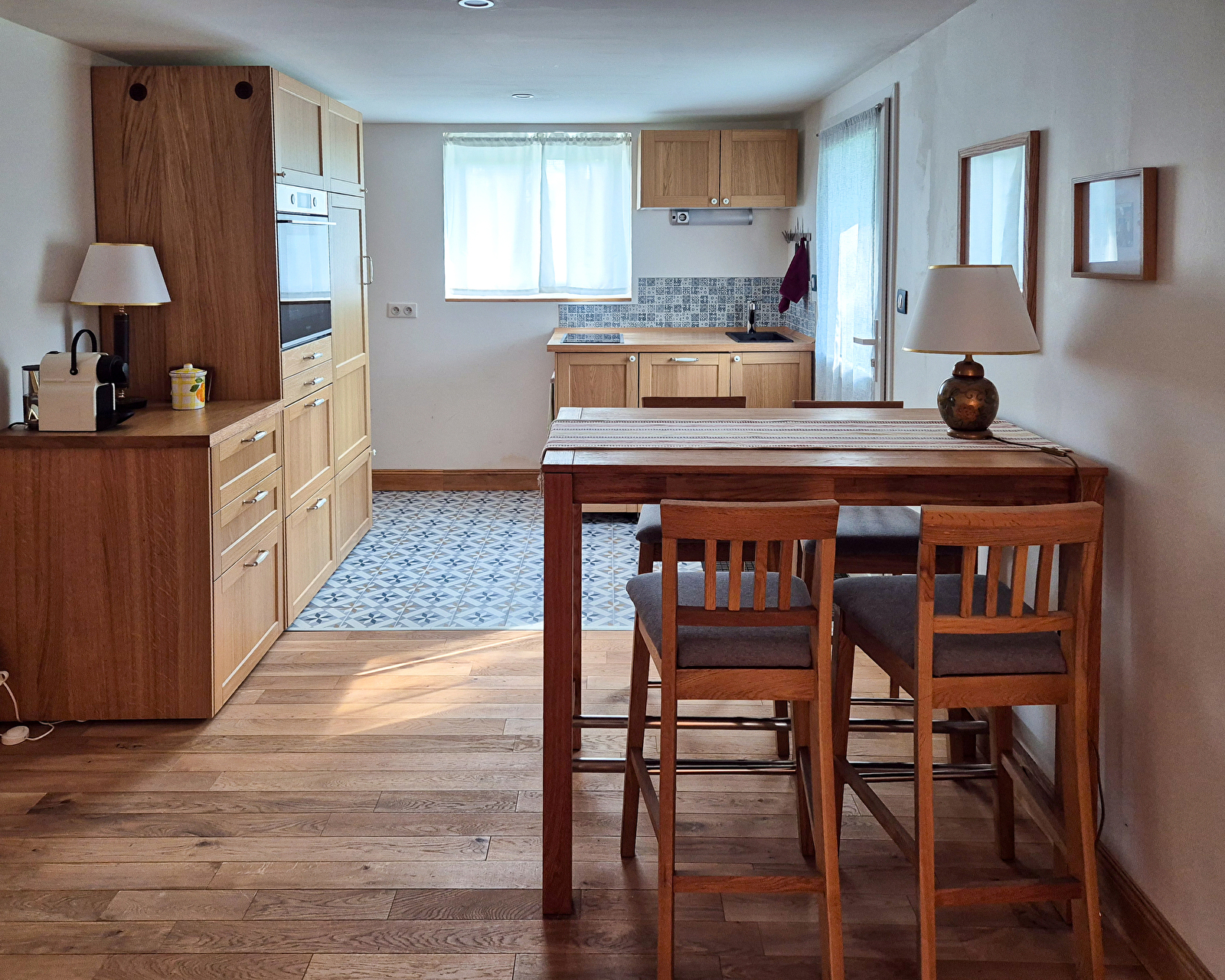 Logement comprenant deux pièces principales et une salle de bains, au calme dans résidence entourée de verdure, à proximité de la voie verte, et à proximité des commerces et attractions touristiques.